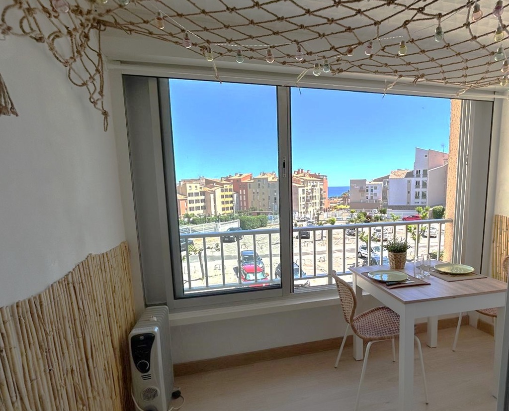Completely renovated and decorated in a “paillote” style, with a small sea view from the loggia for a romantic dinner or family outing. The bay window opens wide to take full advantage of the sea view (2nd floor).