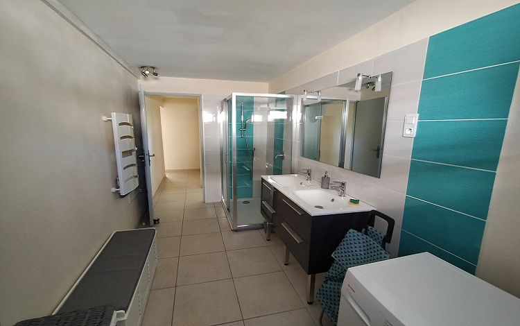– 1 9 m² bathroom with walk-in shower and double washbasin