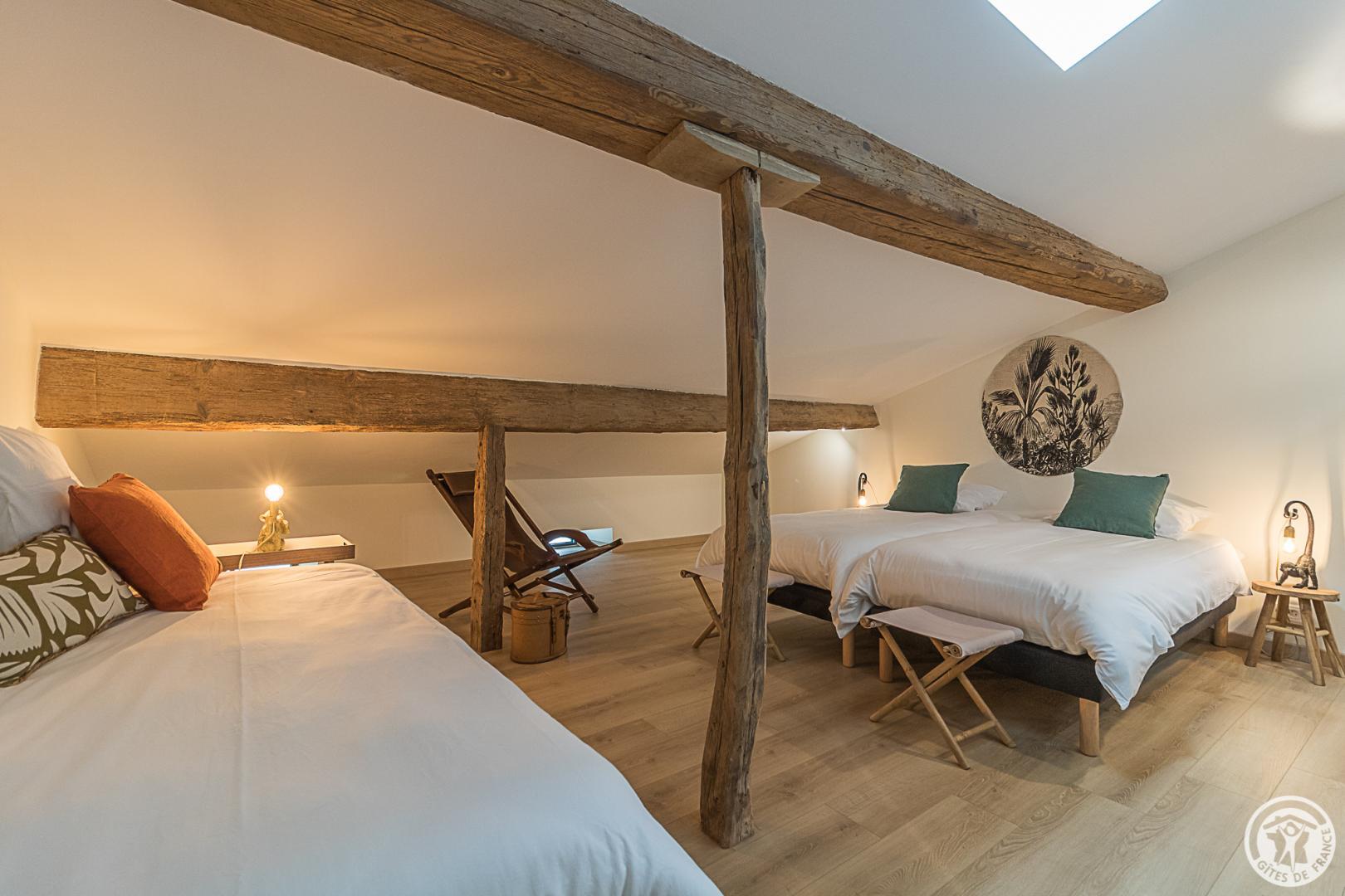 2nd floor with sloping ceilings: 4 bedrooms including Lambaréné (3 beds 90x200cm, 2 of which can be twinned + private shower room), Stockholm (2 beds 90x200cm which can be twinned + private shower room), Boston (2 beds 90x200cm which can be twinned), Brighton (4 beds 90x200cm), shower room, separate WC. Electric heating. Internet connection.