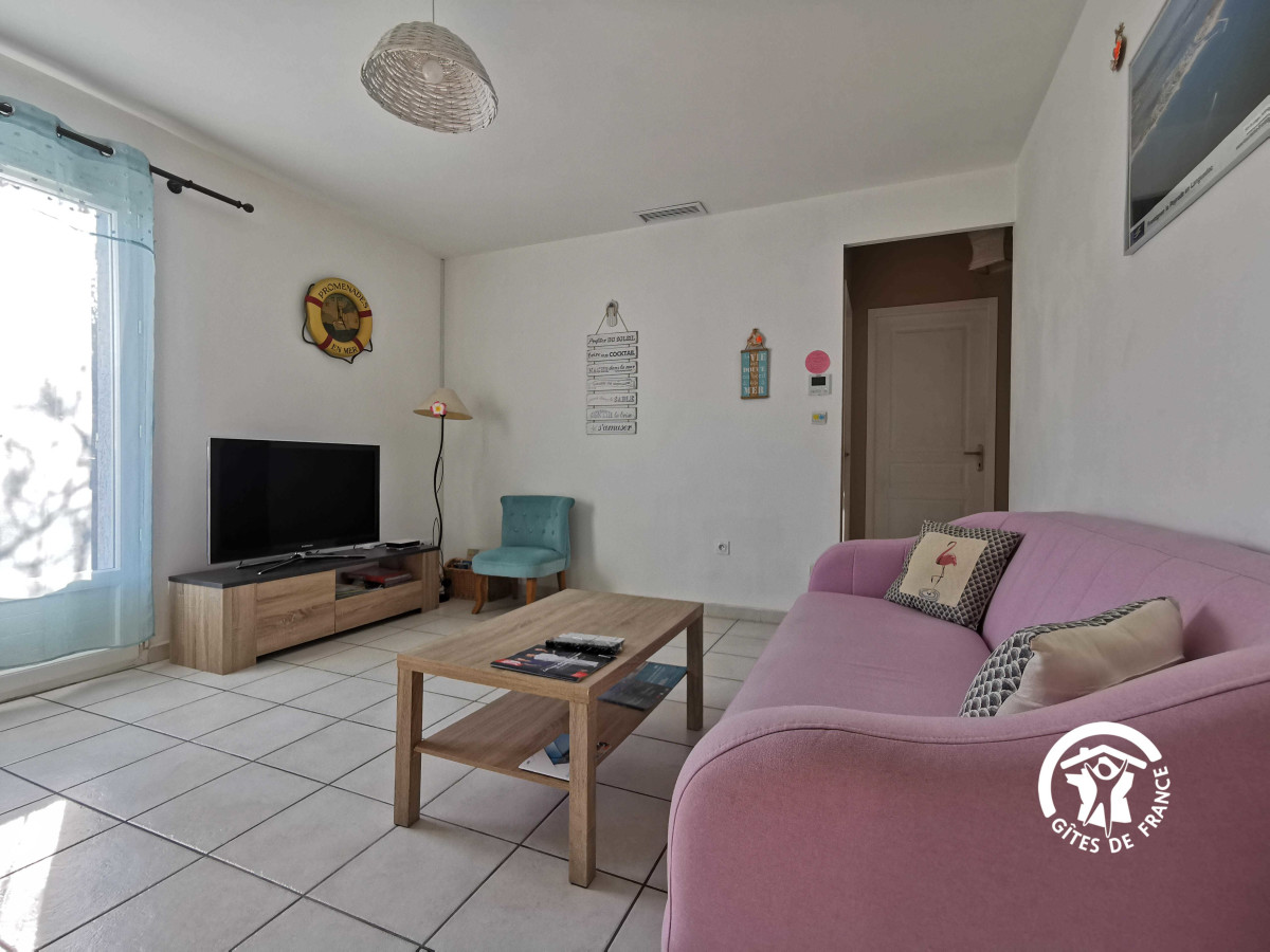 A 7 km de la station thermale de Balaruc-les-Bains et de la ville de Sète, villa indépendante de plain pied en rez-de-chaussée sur terrain d’environ 300 m². Cuisine ouverte sur séjour/salon, CH1 (1 lit 160X200), CH2 (2 lits 90X200), salle de bain, wc ind., chauffage électrique inclus, parking et garage. Terrasse avec salon de jardin. Le jardin est un “refuge LPO (Ligue de Protection des Oiseaux) biodiversité”. Animaux admis sauf catégories 1 & 2. Pour les week-end et courts séjours, lits faits à l’arrivée. Poss. location linge de toilette. Forfait ménage 50€. Superficie 70 m². Forfait cure 3 semaines : Très basse saison 700€ – Basse saison 850€ – Moyenne saison 1200€. Accès facebook : gitelesreglissesfrontignan._ ATTRAITS TOURISTIQUES : la plage à 2km, Sète (patrie de Paul Valéry et Georges Brassens) à 7km, Montpellier 22km, cathédrale de Maguelone, Pézenas, Saint Guilhem-le-Désert, Le Lac du Salagou.