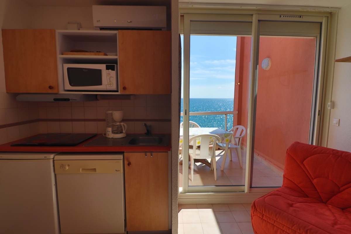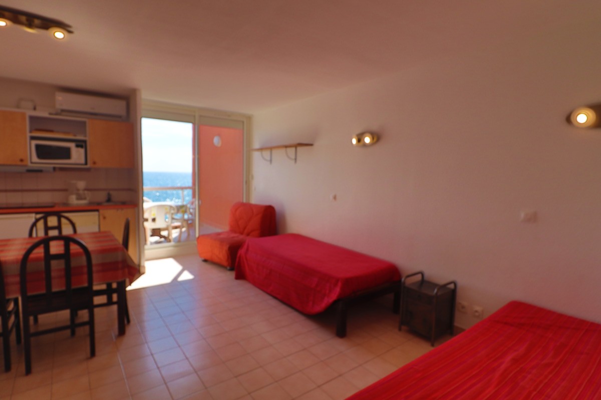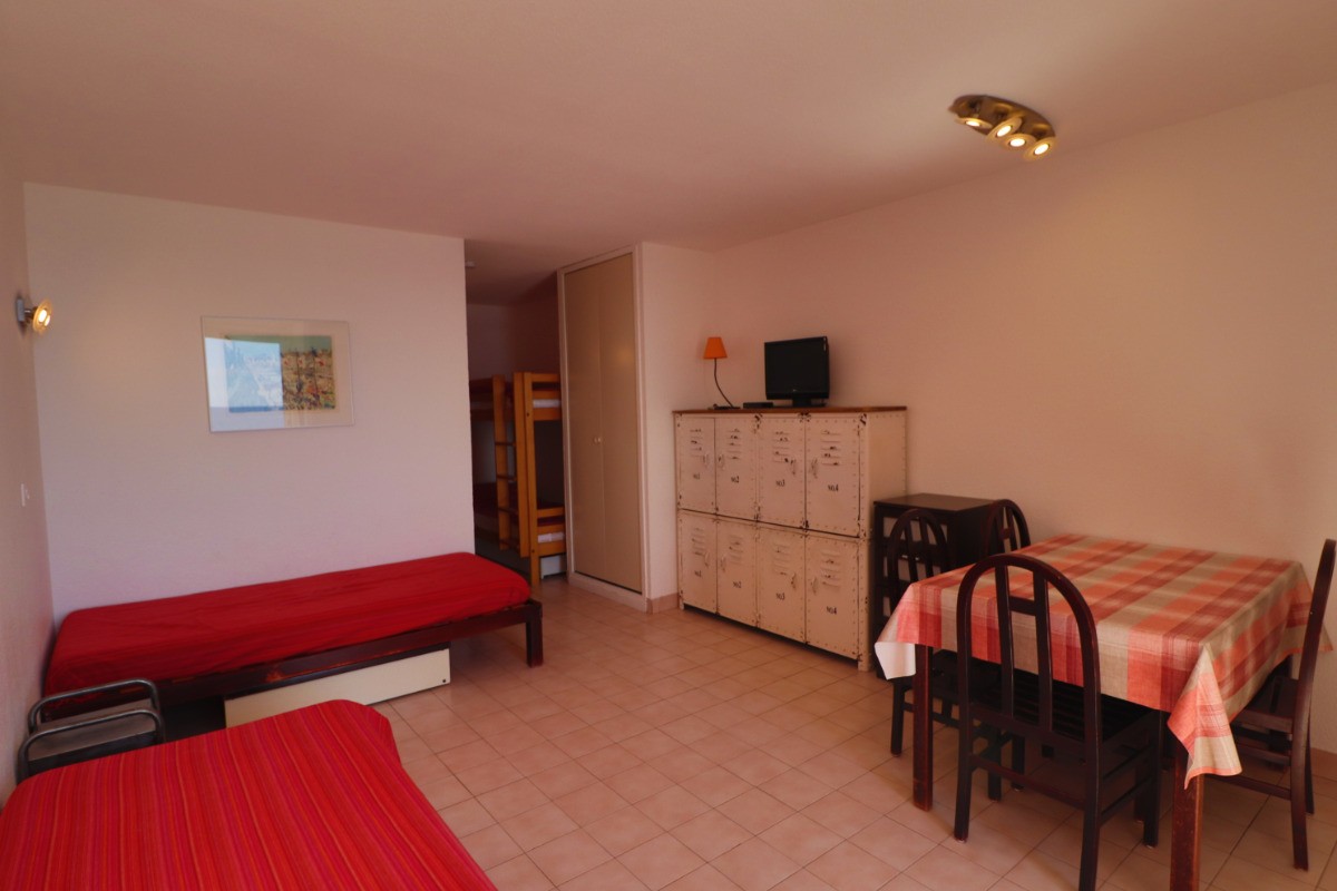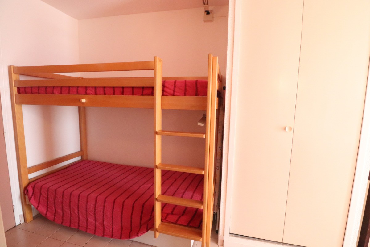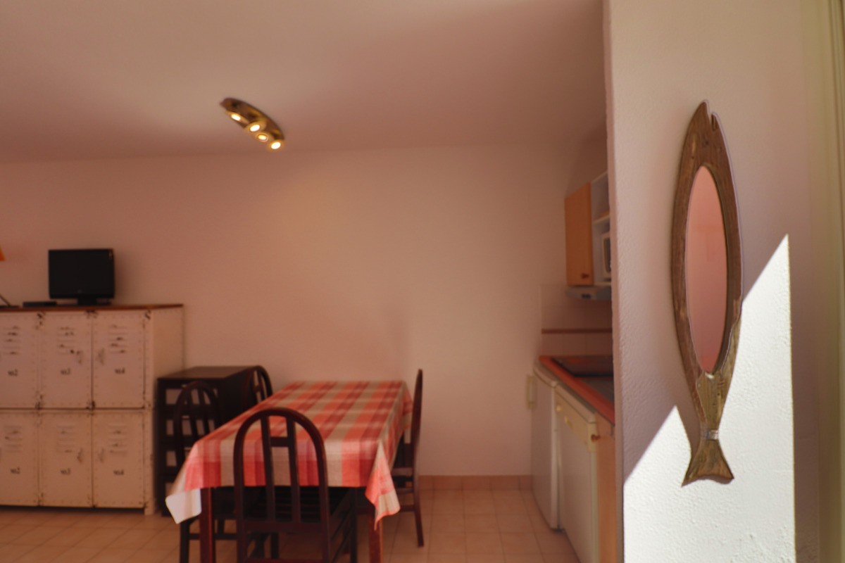 Apartment bed-sit cabin, 24 m², first floor Lift. At the seaside, 1,5km to the dowmtown area. Collective swiming pool, tennis court. Private car park, terrace, garden furniture, private bathroom, separate toilets. Heating, microwave oven, dish-washer, TV. 2 bunk beds cabin, 2 beds 80 cm (32 inch) living room. Rent of linens, housework service. Ref.102L.