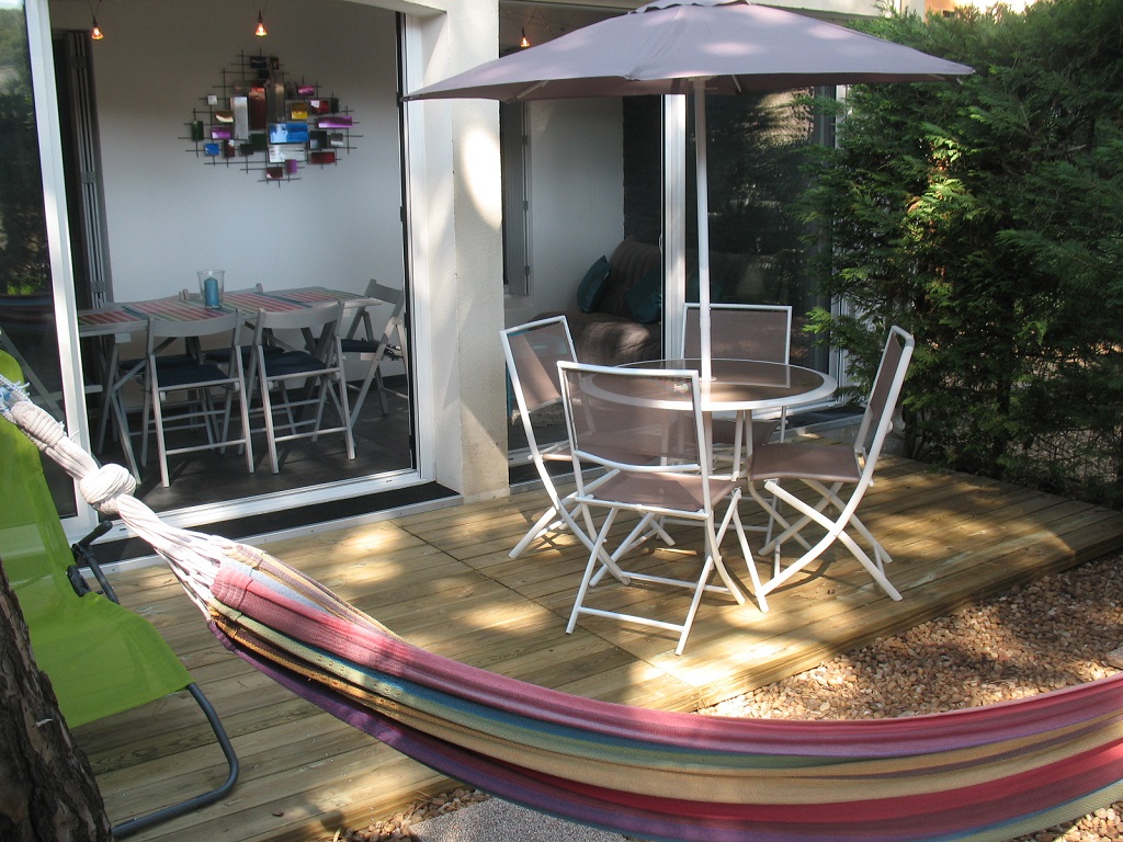 Garden-level T2 apartment in the La Pinède district, 1 km from La Roquille beach, 1 km from the Port Center and 500 meters from the Casino Barrière.