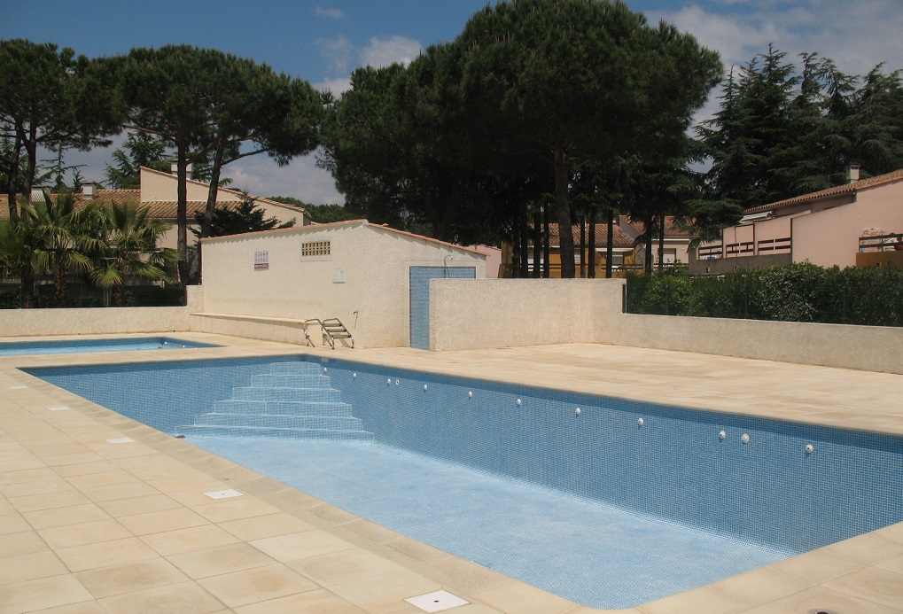 20 m² garden + 10 m² wooden terrace. Fenced residence with swimming pool and private parking space.