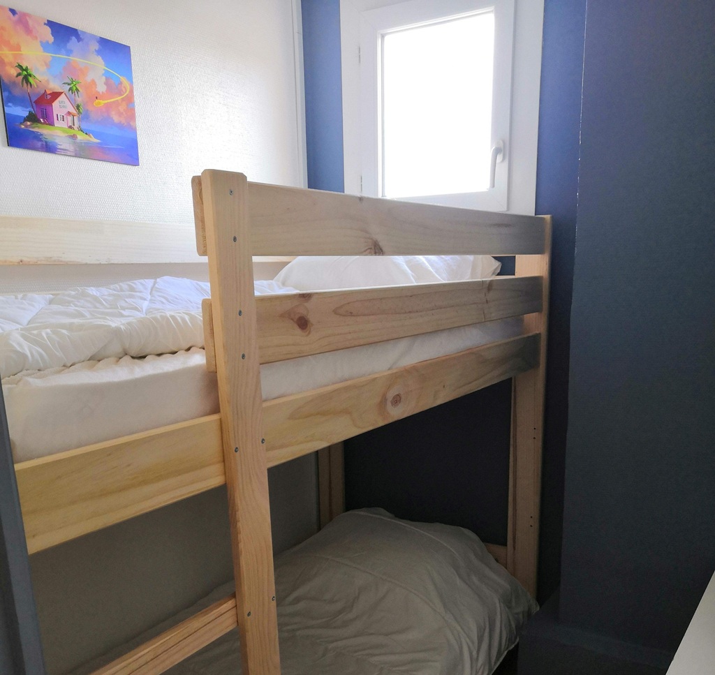 Air-conditioned, with 2 bedrooms for 4 people, it is located on the 4th floor (no elevator). It has all the facilities you need for a great seaside holiday.