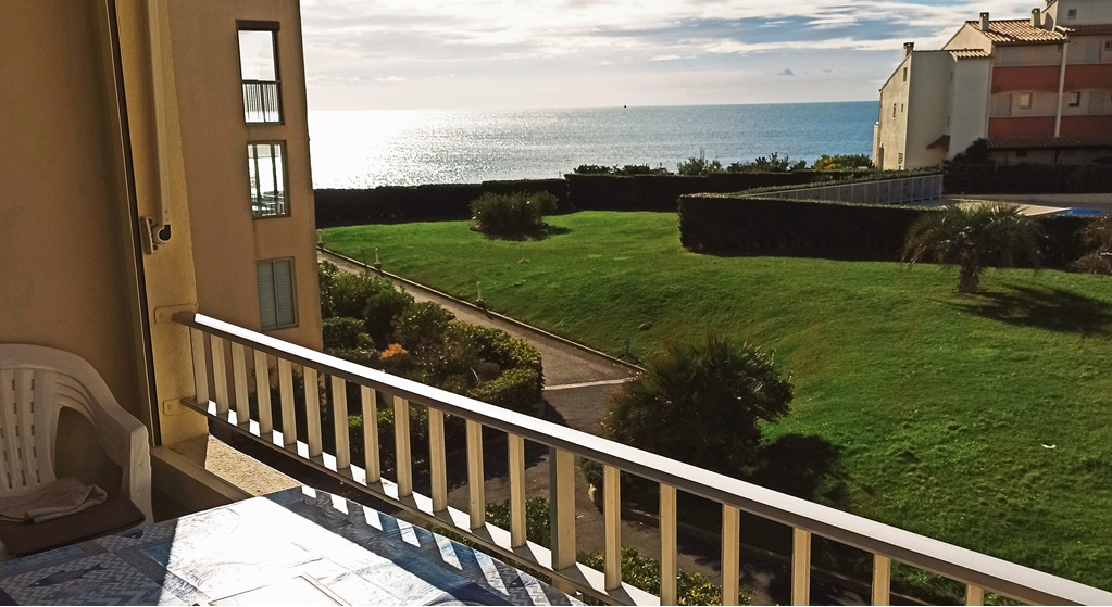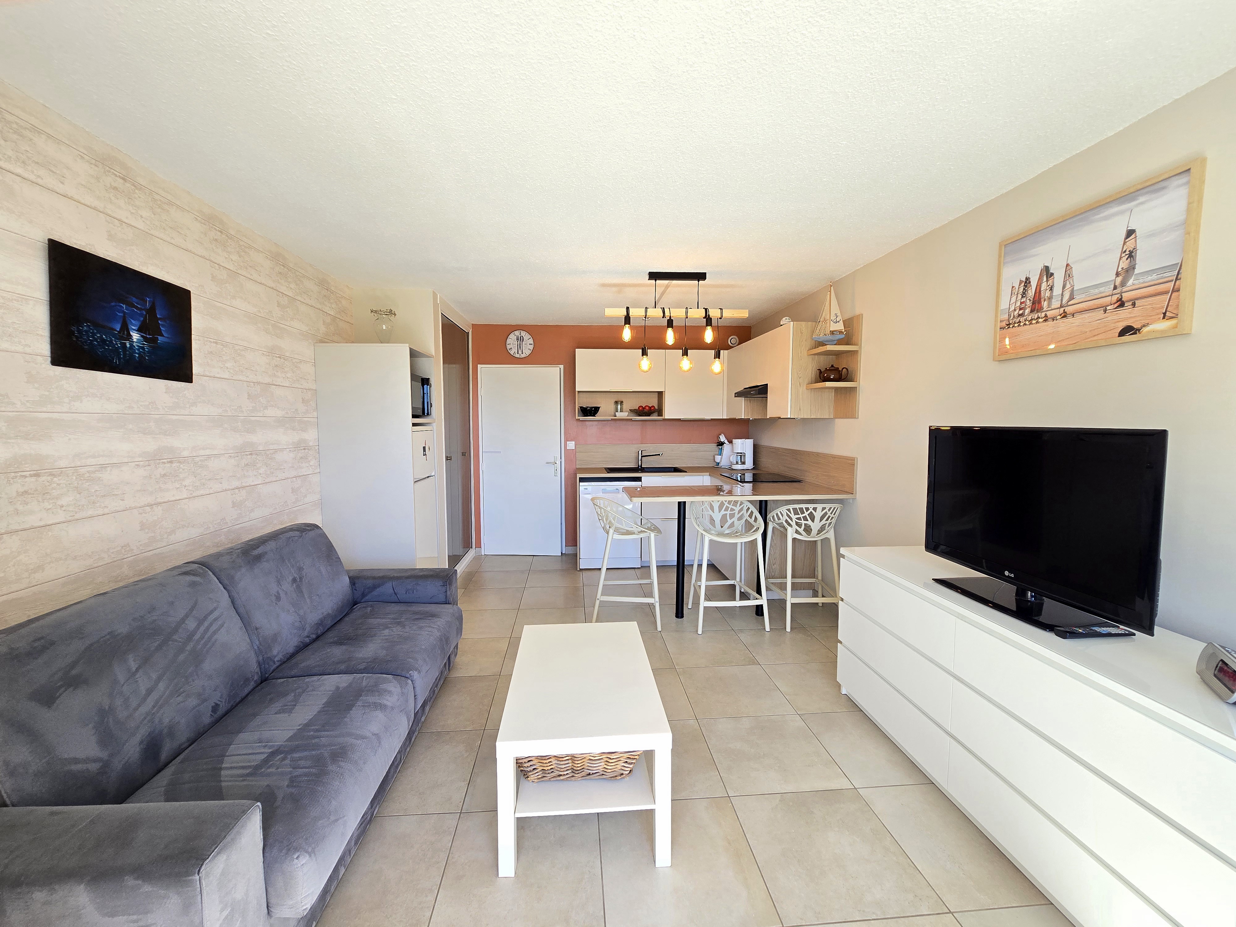Appartement climatisé et rénové situé dans la résidence Les Indes Galantes, vue mer, les pieds dans l’eau. Piscine, parking. Proche de tous commerces.