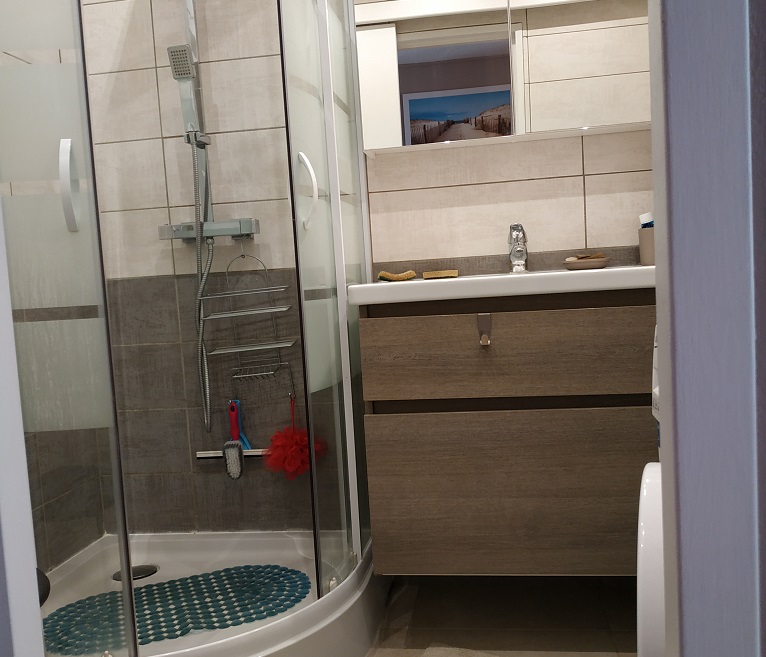 Entrance with bunk beds, access to renovated bathroom, washing machine, separate WC.