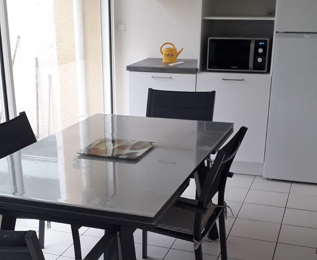 Small house in residence with swimming pool and parking. Fully equipped. 300m from Richelieu beach. Restaurants and shops nearby.