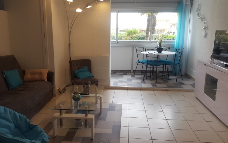 50 m² ground-floor T2 apartment in the “Sablotel 1” residence in the Môle district, 80 meters from the beach.
