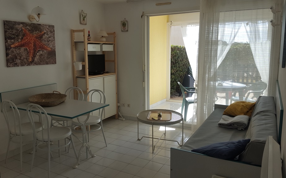2-room apartment for 4 people, with WIFI included. Ground floor, direct access to gardens, swimming pool and Rochelongue beach.