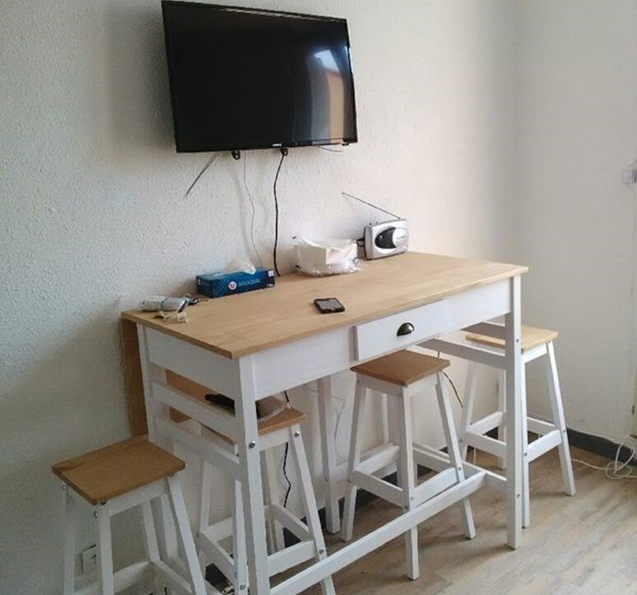 The balcony is equipped for 4 people to eat in the shade of an umbrella, with a view over the pool to keep an eye on your children.