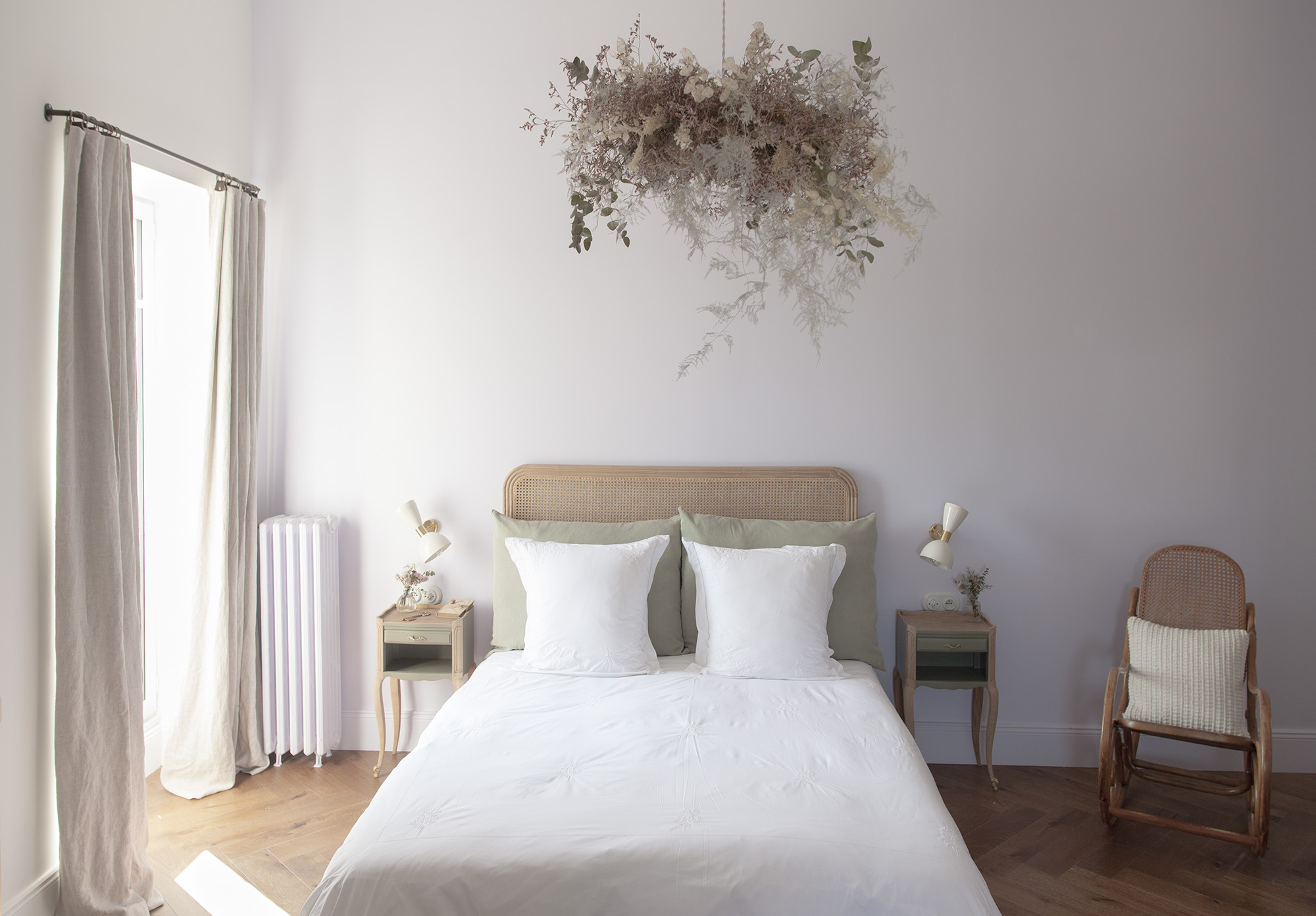– Valentine est une master bedroom de 40m2, avec 2 espaces extérieurs privés et plusieurs espaces de vie : un bureau et un coin salon doté d’un canapé-lit pouvant se transformer en couchage pour un enfant.