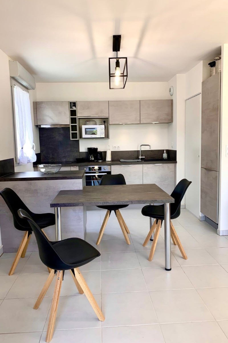 LE MARINEO I (4 people (child, baby included) On the ground floor of a luxury residence located close to the beach, the sailing school and the port of MEZE, beautiful comfortable apartment. A beautiful living room with equipped American kitchen (dishwasher, washing machine, ceramic hob, oven, extractor hood, microwave, fridge / freezer), a living room with a 140 cm sofa bed + TV and a dining area . The whole giving access to a small garden with terrace. The night area includes two bedrooms. A bedroom with a 160 cm bed and a bedroom with 2 90×2000 beds -A bathroom with its walk-in shower. The toilets are separate. In the basement, private parking space. Elevator. Apartment very well located. Internet connection in the property. Ideal for family vacations. Animals are not allowed – NON SMOKING accommodation – Linen Not Provided. parties non authorized in the property. During the heating period a supplement will be requested for your consumption during your stay. On meter readings and will be payable at the end of your stay.