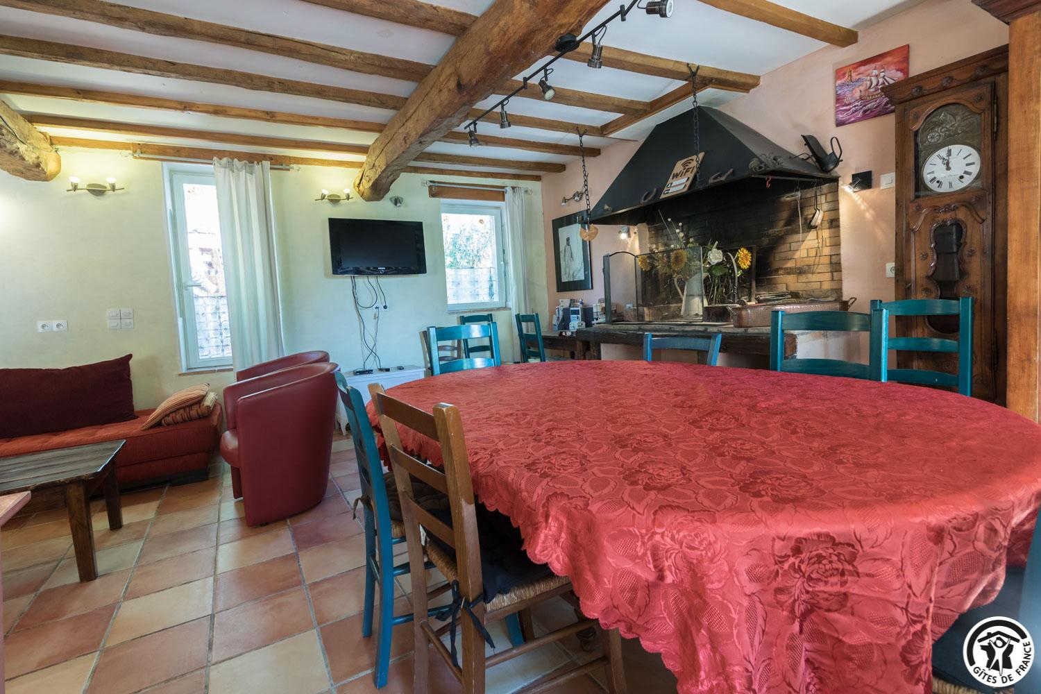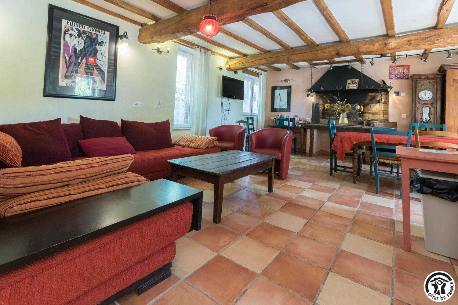 With a shared heated swimming pool (5x10m), you’ll love putting down your bags in this gîte, which has been converted from an old farmhouse. You will enjoy a small private terrace, a large garden planted with trees and flowers (not enclosed) shared with the owners and guests of the adjoining gîte (independent access). Protected pond, portico, bicycles. 70m² reception room (fireplace) for festive events. Car park.