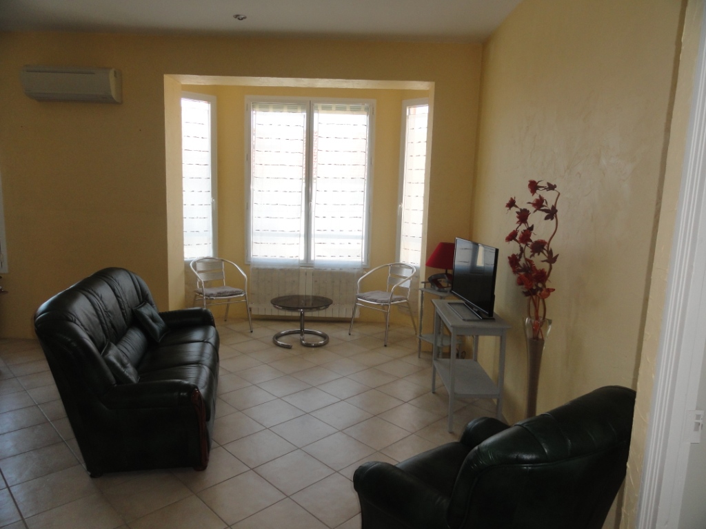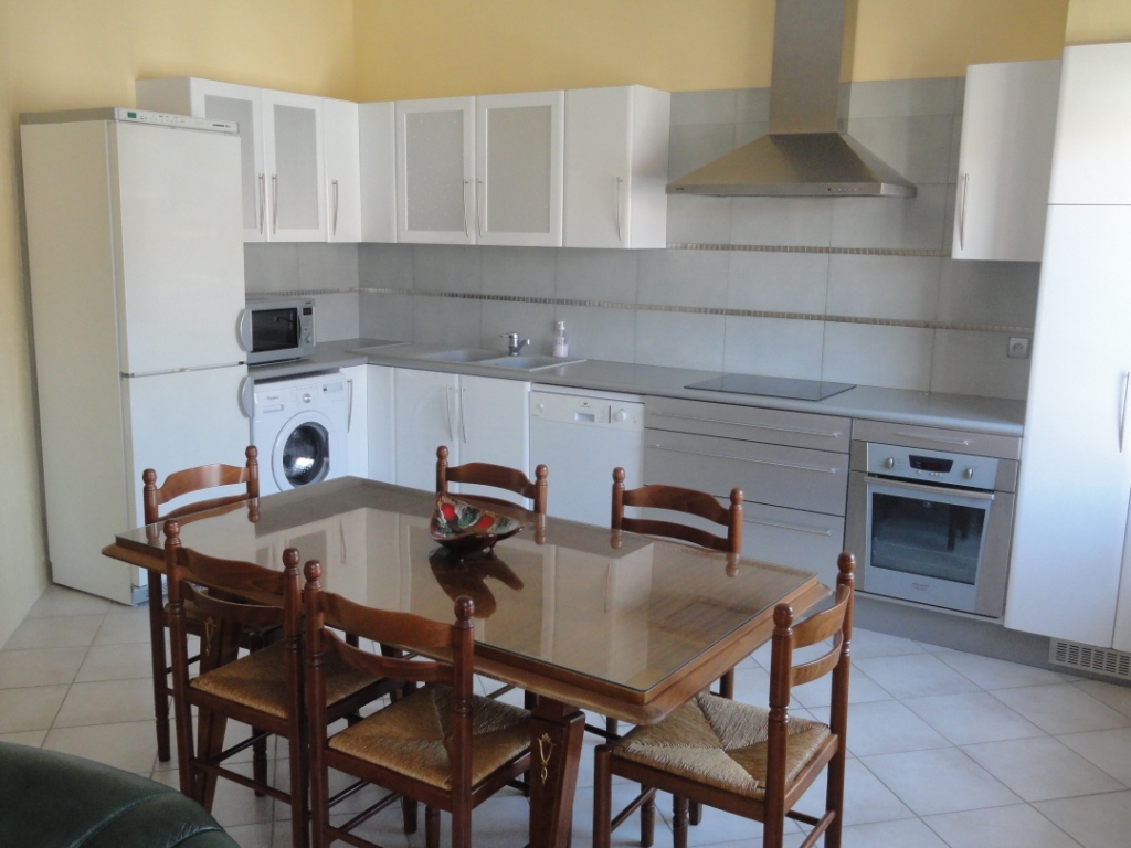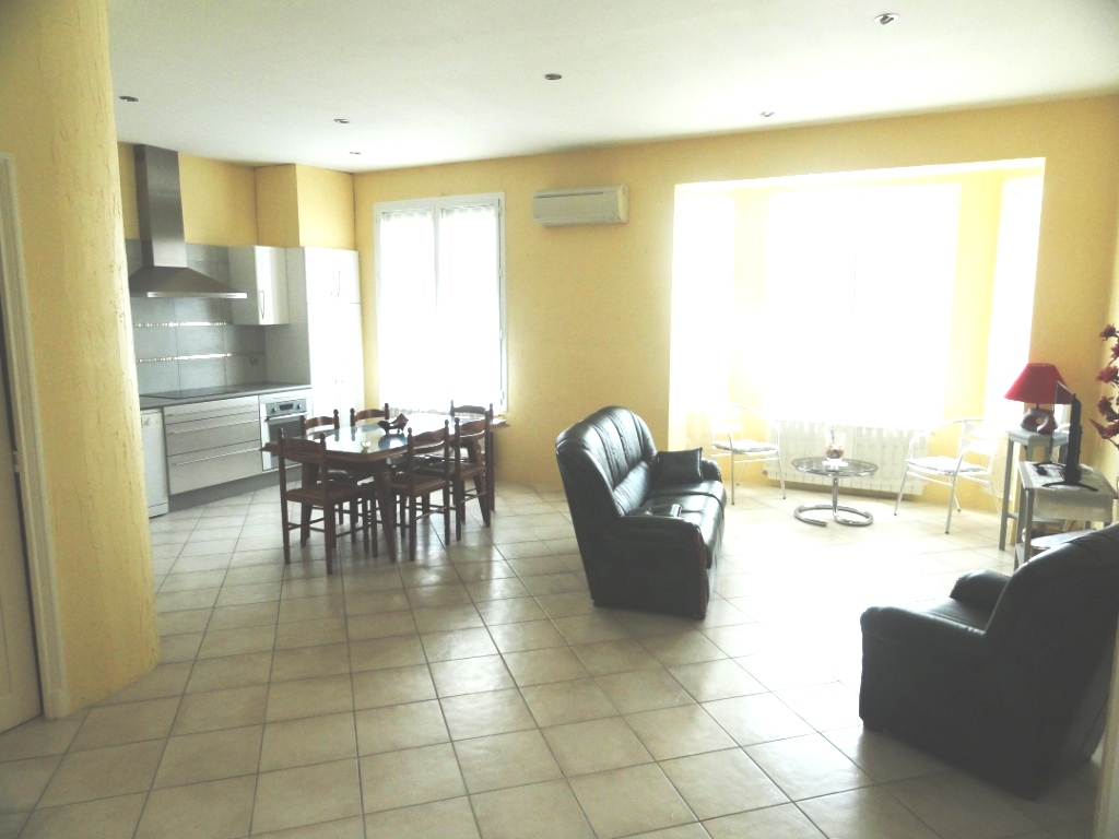 Appartement F4 de 93m², très ensoleillé, dans une maison comprenant cuisine équipée, four, lave-vaisselle, micro-ondes, lave-linge, plaque induction , climatisation, 3 chambres spacieuses, salle de bain et WC indépendant, jardin de 60m².