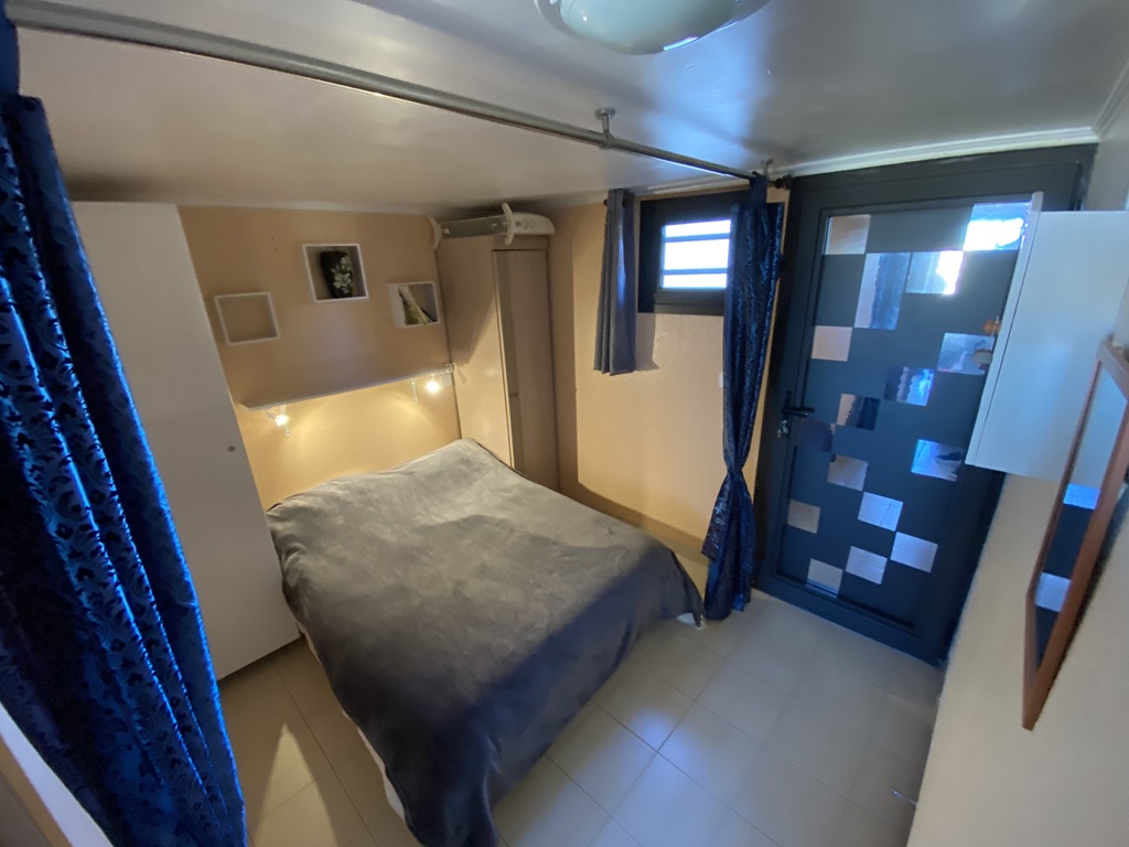 Comprising entrance hall, bedroom with double bed and storage space, shower room, mezzanine with double bed, living room with BZ. Equipped kitchen, TV with various channels, games and books.