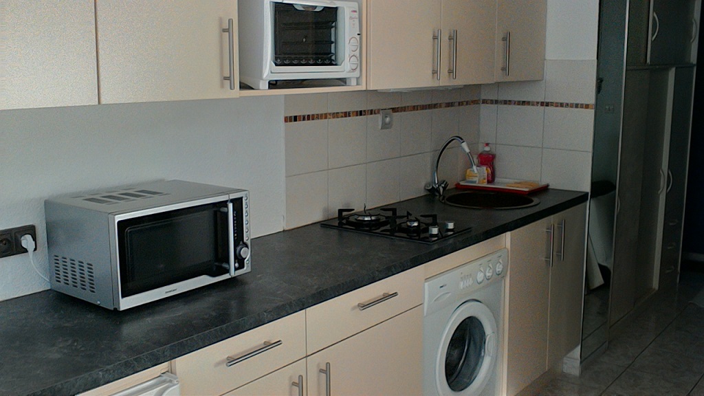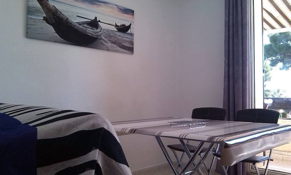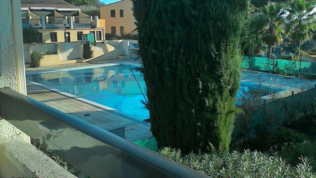 Apartment on the 1st and top floor, overlooking the pool and park, with one bedroom with double bed + one BZ in the main room. New bedding.