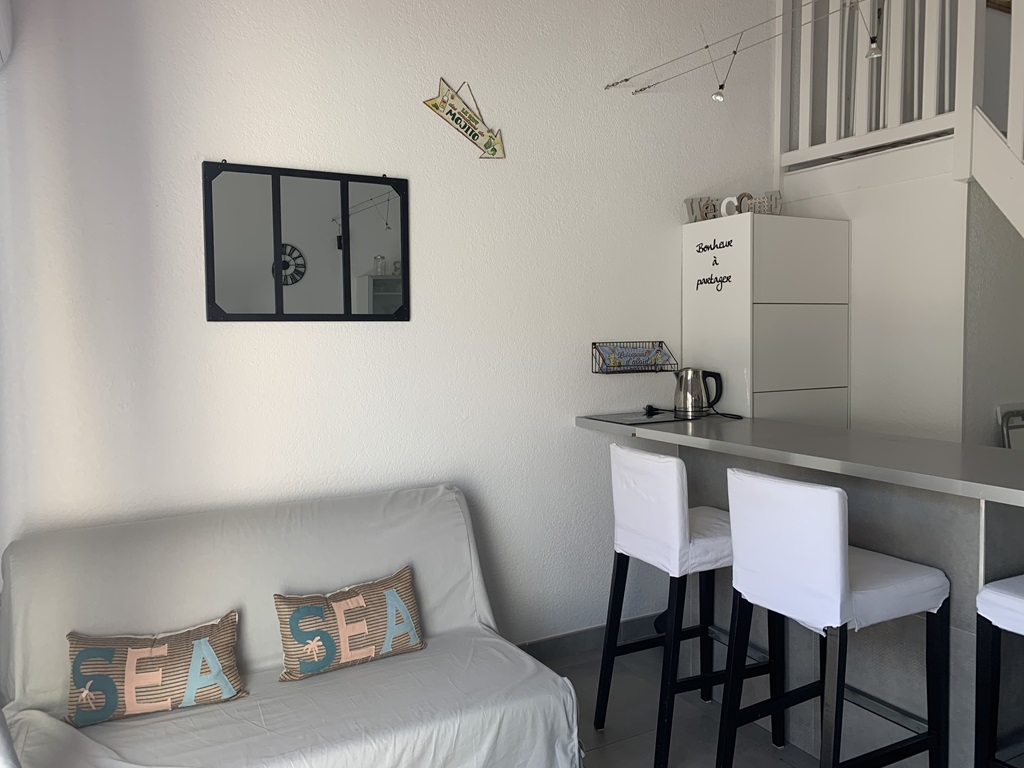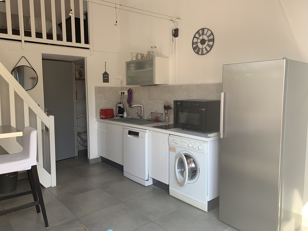 Very bright and quiet, with a 34m² terrace overlooking the interior of the residence. Fully equipped: dishwasher, washing machine, large combined microwave oven, large fridge, Dolce Gusto machine.