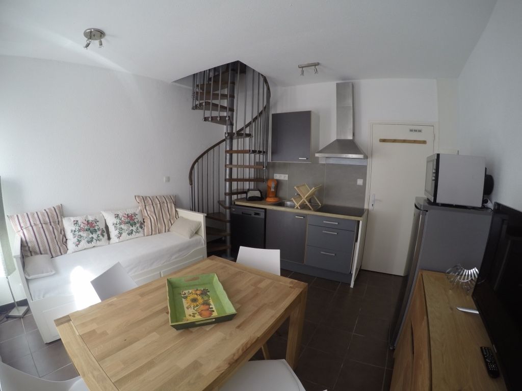 Appartement duplex, 30m2, RDC, situé au coeur d’un village, à 3 km des plages, accessible en vélo par une piste cyclable, proche de toutes les commodités, entièrement refait comprenant une pièce à vivre – coin cuisine au rez-de-chaussée et une chambre avec salle d’eau et WC à l’étage, pour 4 personnes, douche à l’italienne.