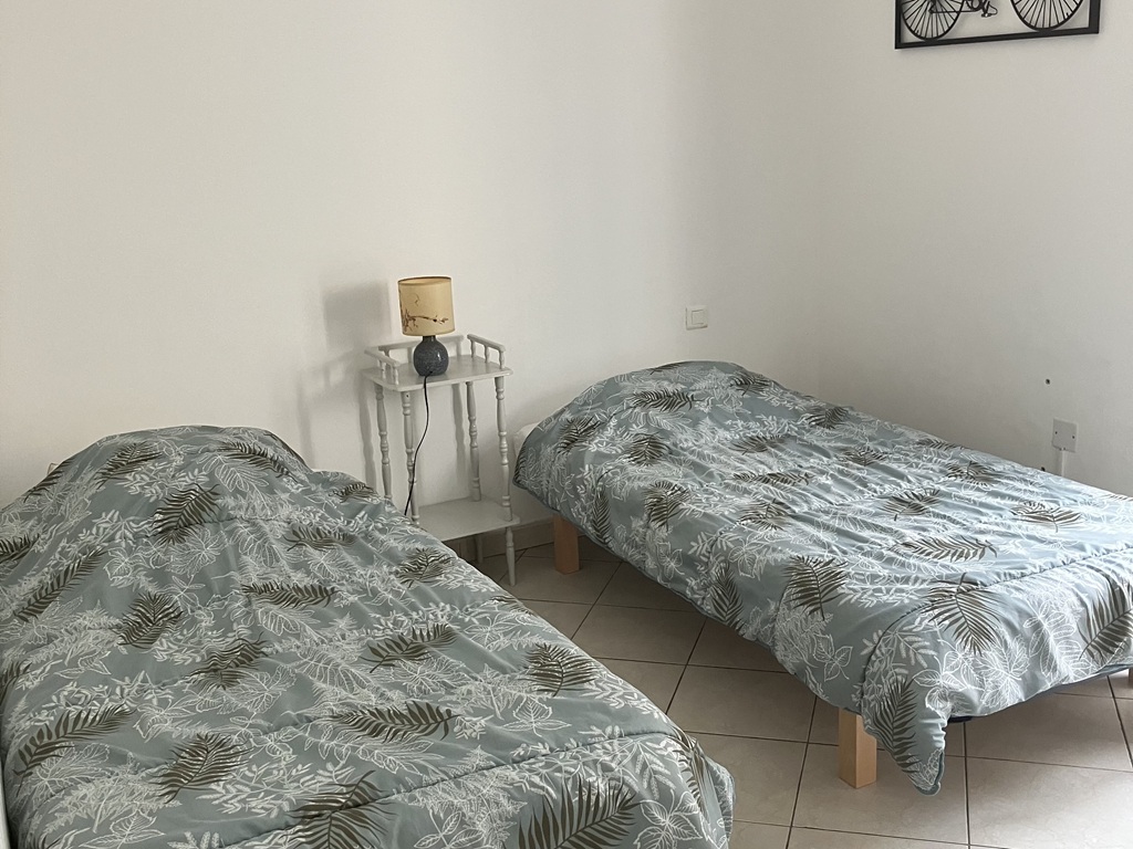 It comprises a 24m² veranda, a living room with TV, a fully-equipped kitchen, a bathroom with separate toilet, 2 air-conditioned bedrooms (one double bed, 2 single beds and 1 extra bed).