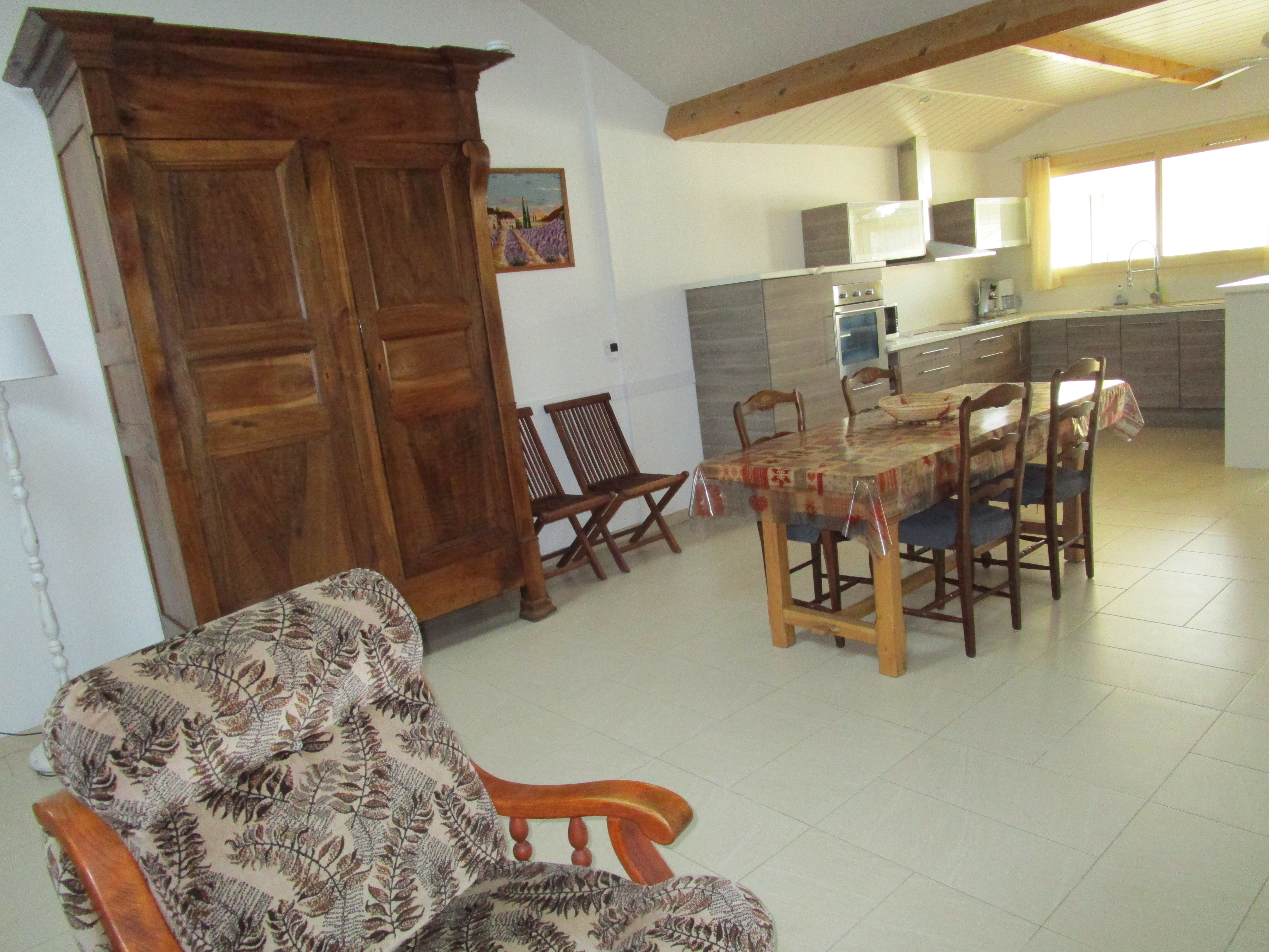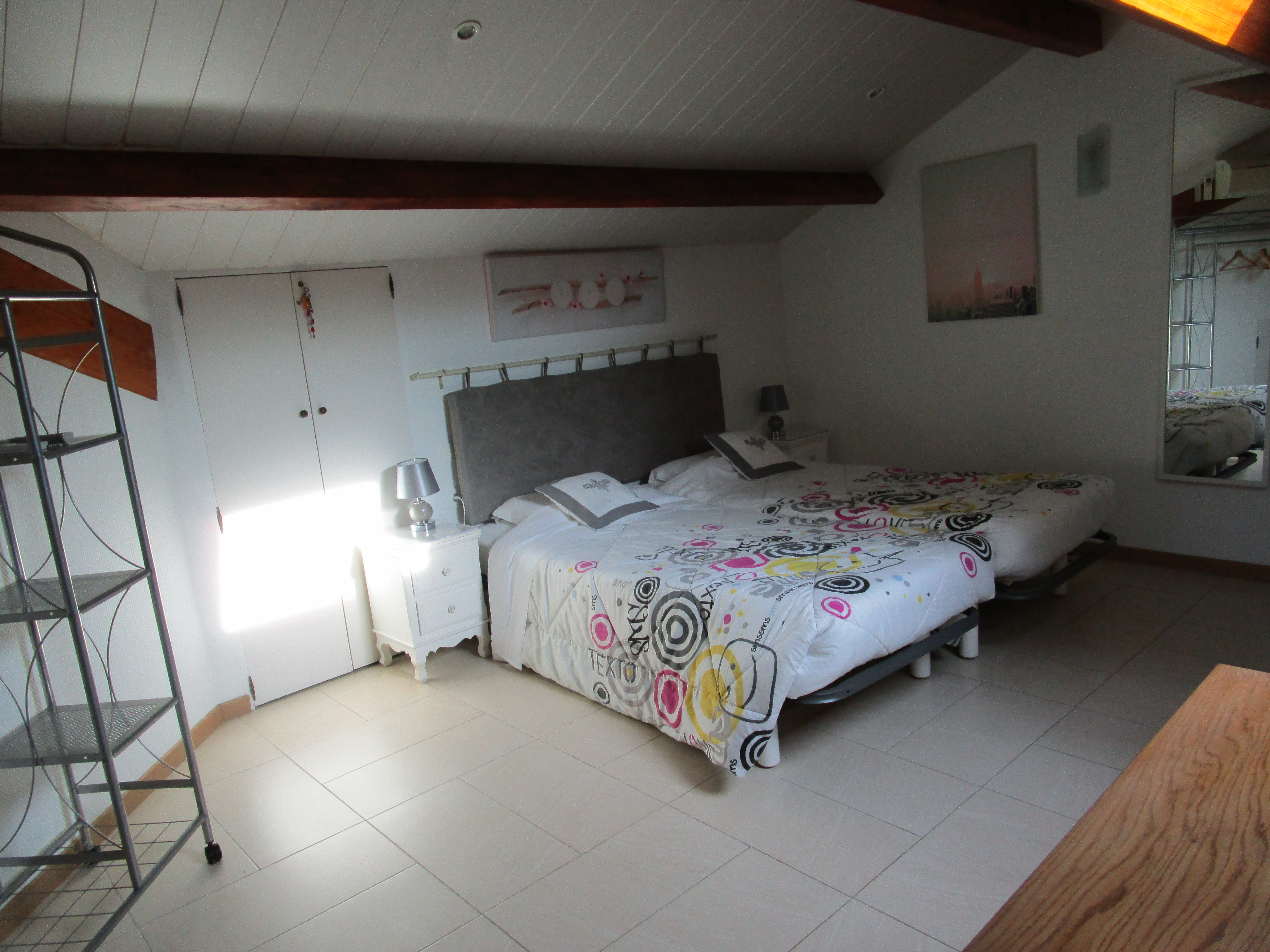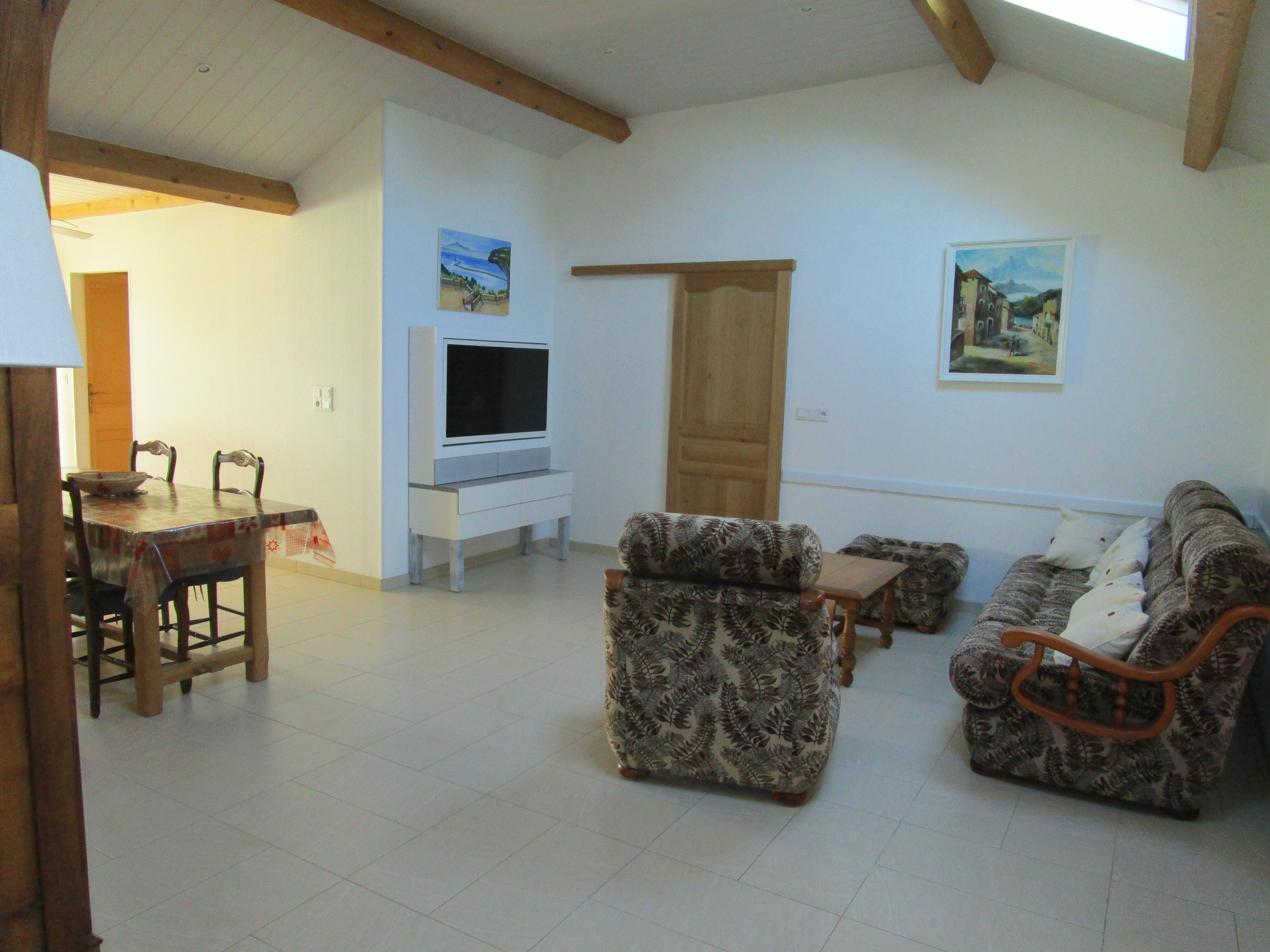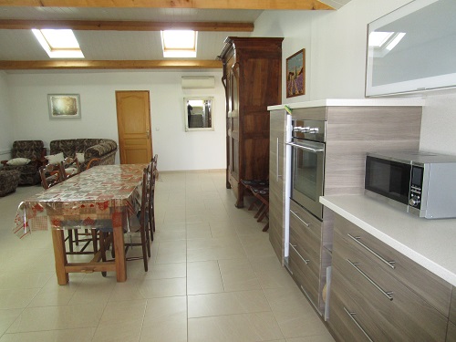 Villa apartment on 1st floor in a quiet area 200 m from the village. This apartment comprises an open-plan kitchen, a living room with two motorized velux windows. The rooms are large and bright. One of the two bedrooms has an attic. Breakfast can be taken on the balcony or veranda. Fully equipped with air conditioning. Sleeps 4 adults and 2 children. Two private parking spaces are available for your car.