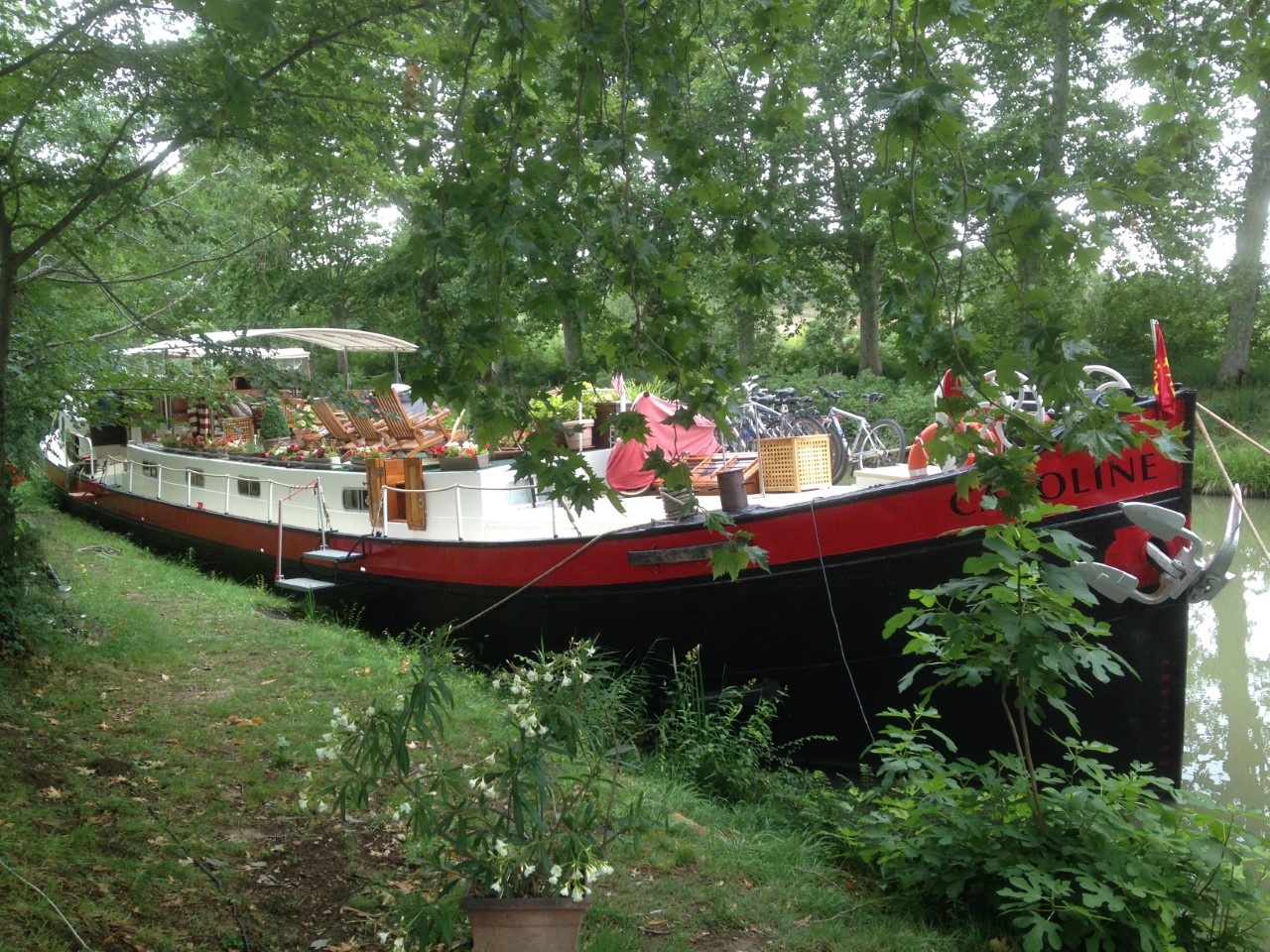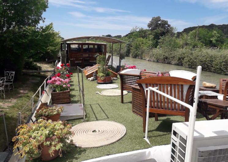Chambres d’hôtes insolite, la péniche Caroline est située en pleine nature sur la canal du Midi. Cette magnifique péniche quasi centenaire, vous offre 3 cabines doubles avec salle d’eau privative, grand salon et une magnifique terrasse fleurie sur le ponton. Avec 10 ans d’expérience dans la restauration, la péniche Caroline propose la table d’hôtes à ses convives. Parenthèse enchantée, détendez-vous sur le Canal du Midi, chef d’œuvre classé au patrimoine mondial de l’Unesco, avec pour toile de fond les vignobles qui s’étendent sur toute la plaine Languedocienne. Voyagez léger (à vélo par exemple), le linge de maison est fourni.