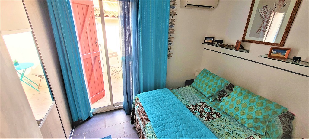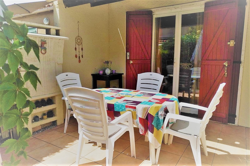 Air-conditioned T2 cabin with semi-shaded terrace and patio located in a secure residence 1500 m from La Roquille beach and the naturist village. Petanque court.