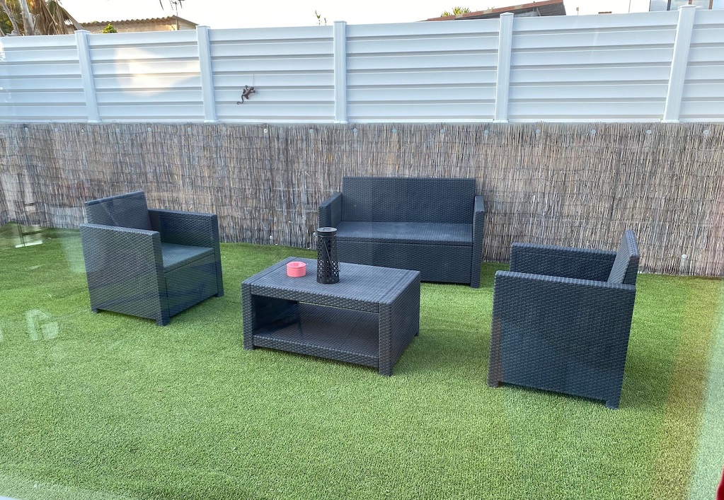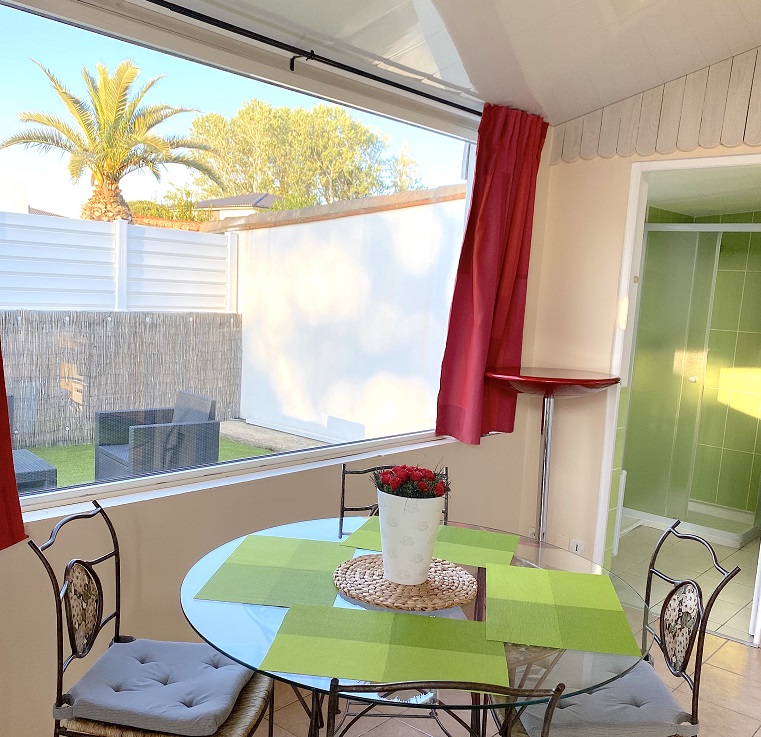 45 m² air-conditioned 3-sided detached villa on private property in quiet residential neighborhood near Cap d’Agde and Grau d’Agde. Beach 5 minutes’ walk away.