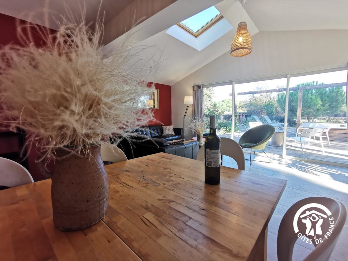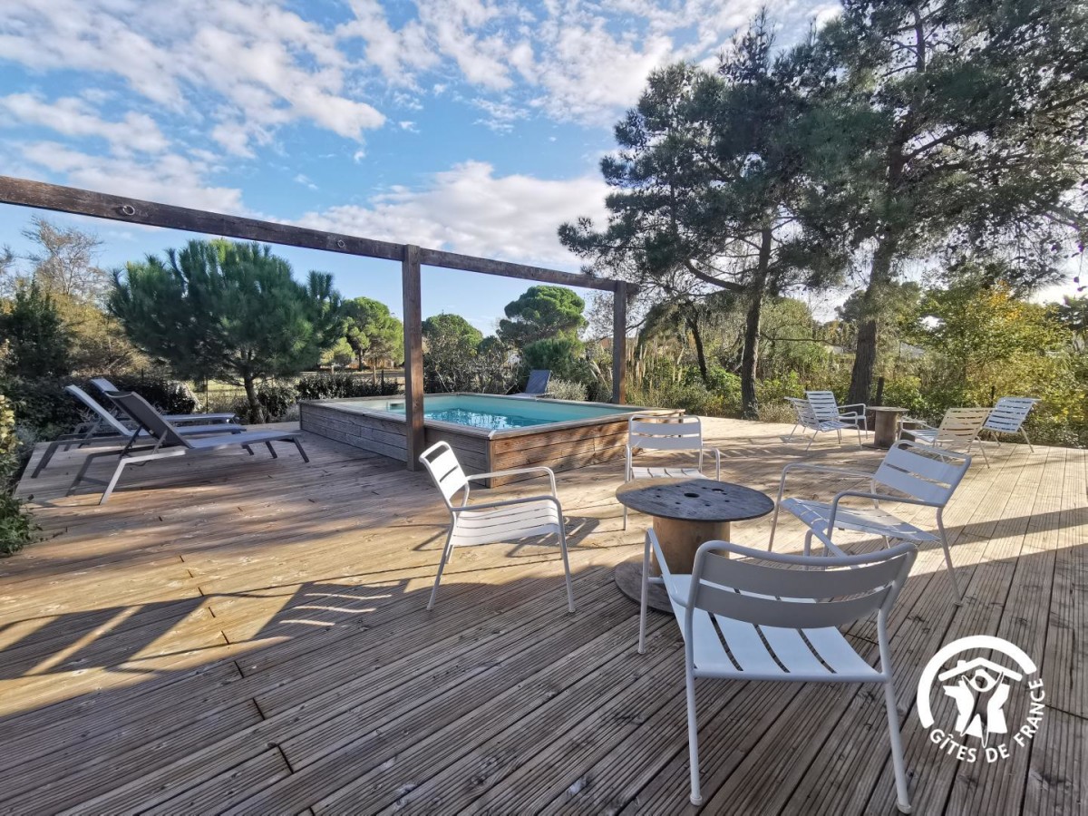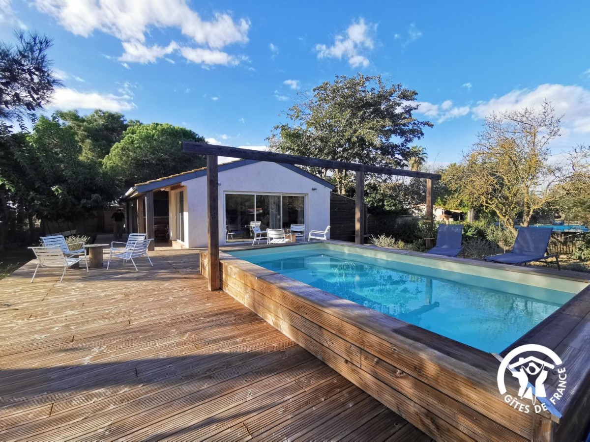 À Marseillan, vous profiterez d’un cadre privilégié au bord de l’étang de Thau. Vous y découvrirez les parcs à huîtres, les dégustations de coquillages face à l’eau et les villes typiques comme Sète ou Bouzigues. À quelques kilomètres, le Canal du Midi, classé au patrimoine mondial de l’UNESCO, vous invite à de belles balades à pied ou à vélo le long de ses berges ombragées. Les villes d’Agde, Pézenas et Béziers complètent votre séjour entre patrimoine, marchés animés, fêtes locales et plaisirs balnéaires. La Villa du Beau Rivage est une maison indépendante climatisée, pensée pour des vacances en famille ou entre amis dans une ambiance moderne mêlant bois et modernité. La grande pièce à vivre rassemble un espace salon avec canapés et fauteuils, un coin salle à manger convivial avec table familiale et une cuisine ouverte entièrement équipée (four, micro-ondes, lave-vaisselle, réfrigérateur, congélateur, bouilloire, cafetière à filtre et machine Nespresso). Un deuxième petit salon avec canapé et télévision est également disponible. Vous disposez d’une salle d’eau avec baignoire, douche et vasque avec miroir, ainsi que de WC indépendants et d’une buanderie avec lave-linge. Le gîte dispose de quatre chambres : Chambre 1 : 1 lit 160×200, salle d’eau et WC privatifs. Chambre 2 : 1 lit 160×200. Chambre 3 : 2 lits 90×200. Chambre 4 : 2 lits 80×200. À l’extérieur, vous profitez d’un jardin clos et entièrement privatif avec une grande terrasse en bois, couverte, aménagée avec chaises longues et salon de jardin pour prolonger les soirées d’été. La piscine privative extérieure, avec vue dégagée sur la nature promet de belles journées de détente. Parking privatif à l’intérieur de la propriété facilite votre arrivée et vos sorties quotidiennes. Le ménage de fin de séjour est obligatoire (100 €).