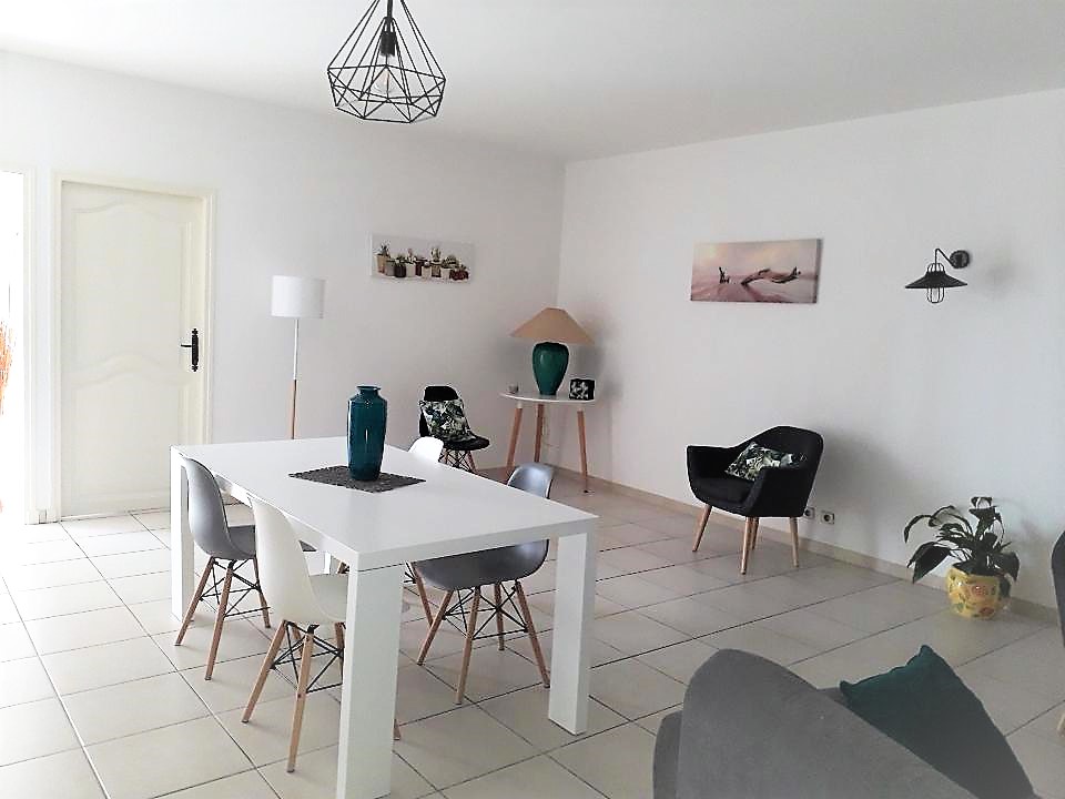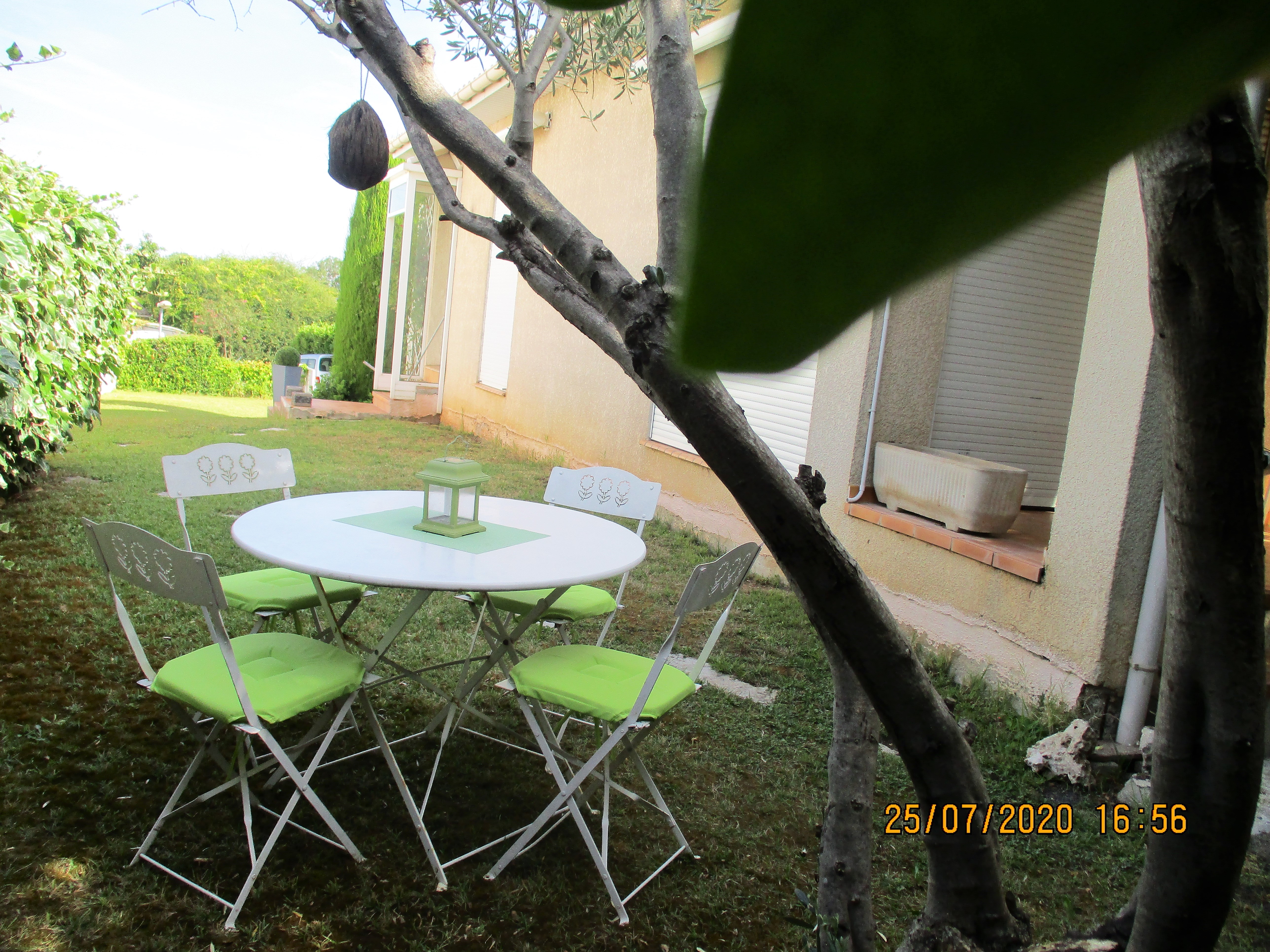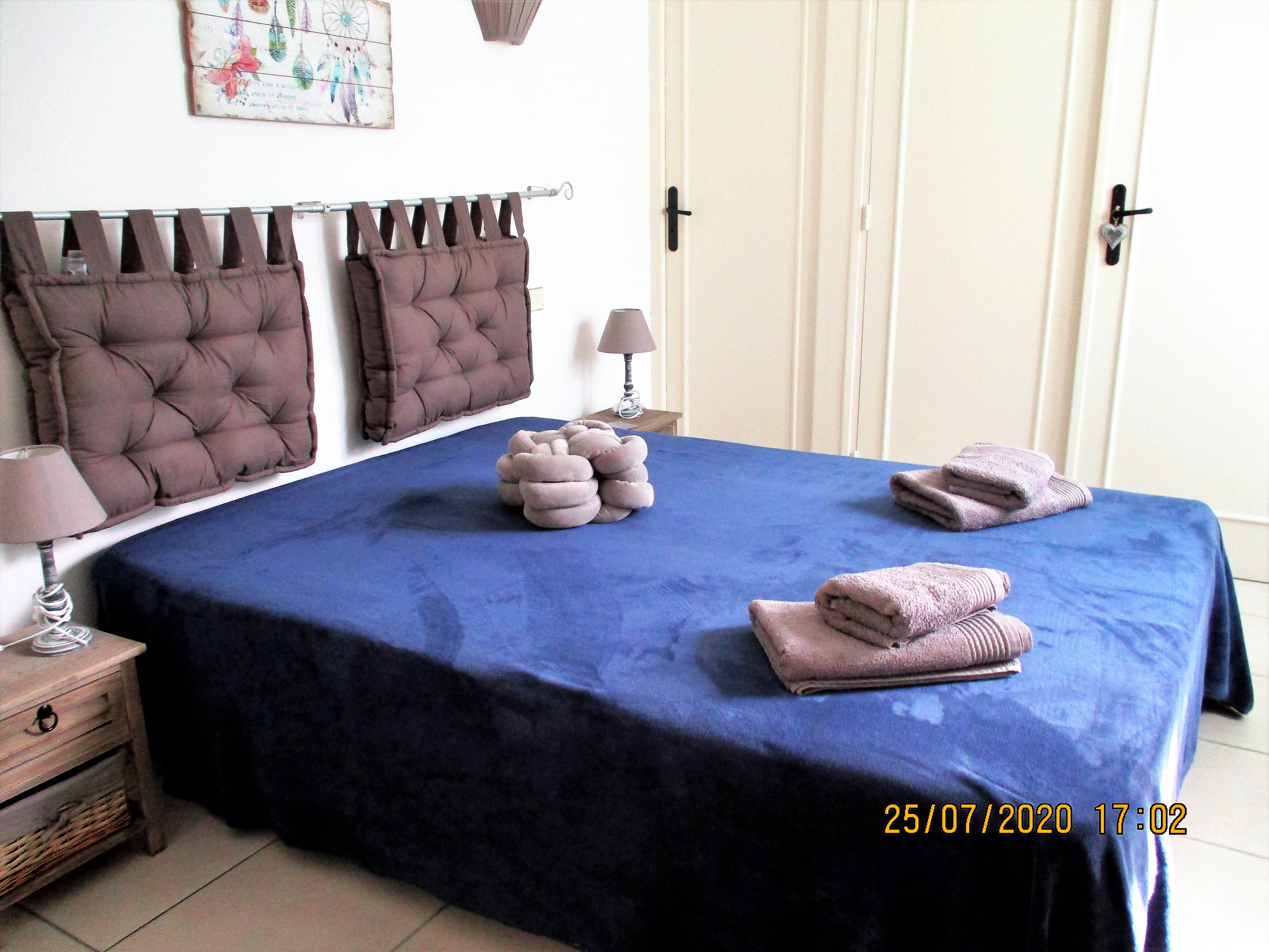 Agréable Villa Plain-Pied de 106 m2 sur un terrain de 600 m2. Entrée, cuisine semi-équipée avec arrière cuisine, spacieux séjour-salon de 41 m2, coin nuit desservant 2 gdes chambres dont 1 avec salle d’eau privative, s de bains, toilettes. Capacité 6 couchages (2 gds lits de 140 x 190 + 1 lit superposé de 2 couchages 90×190) . Parking privatif possibilité de garer 2 véhicules à l’intérieur du jardin + 1 place extérieure devant la villa. Beau jardin avec pelouse et arrosage automatique. 2 belles terrasses. Belle vue dégagée. Climatisation réversible. Internet gratuit.