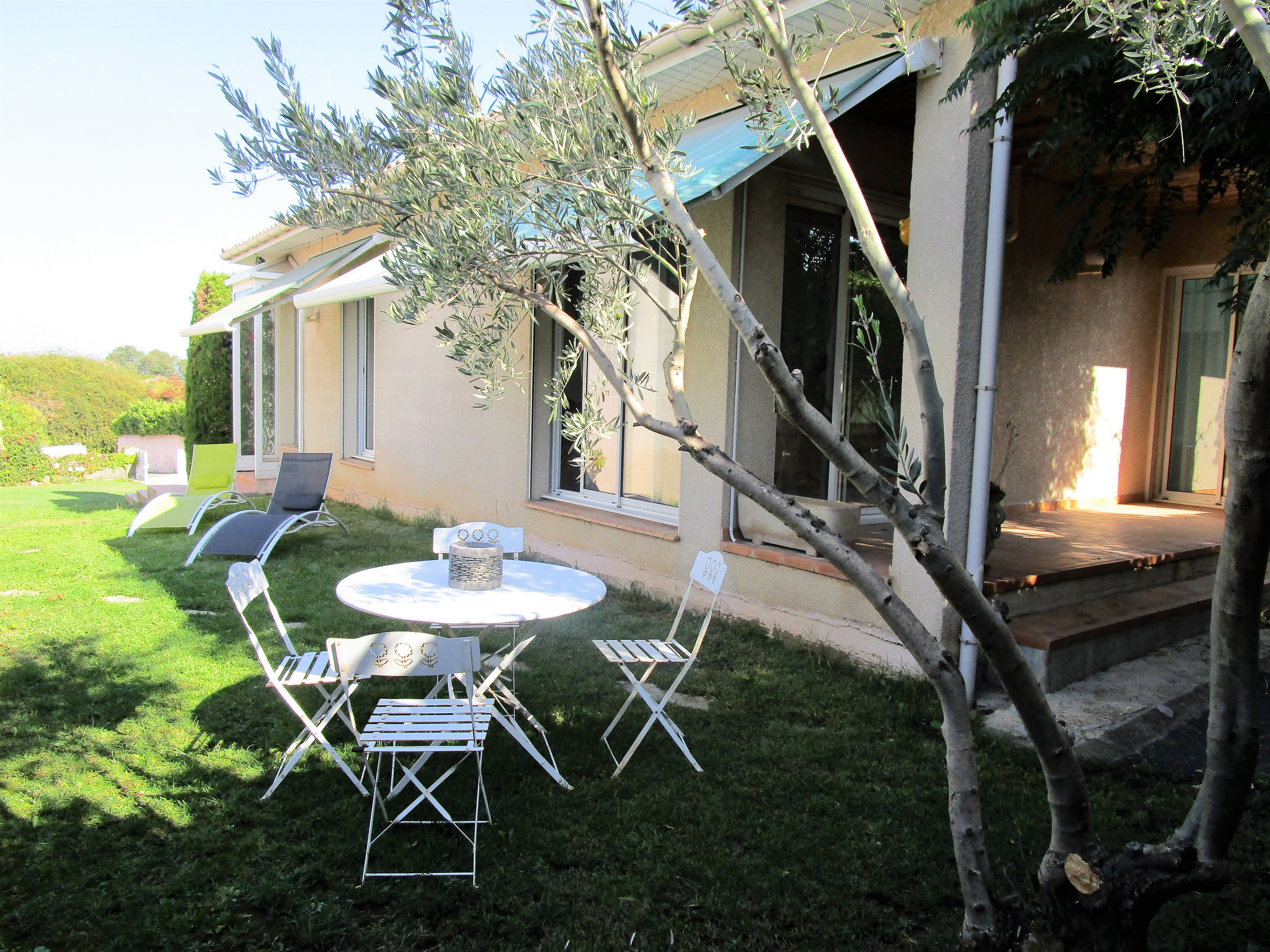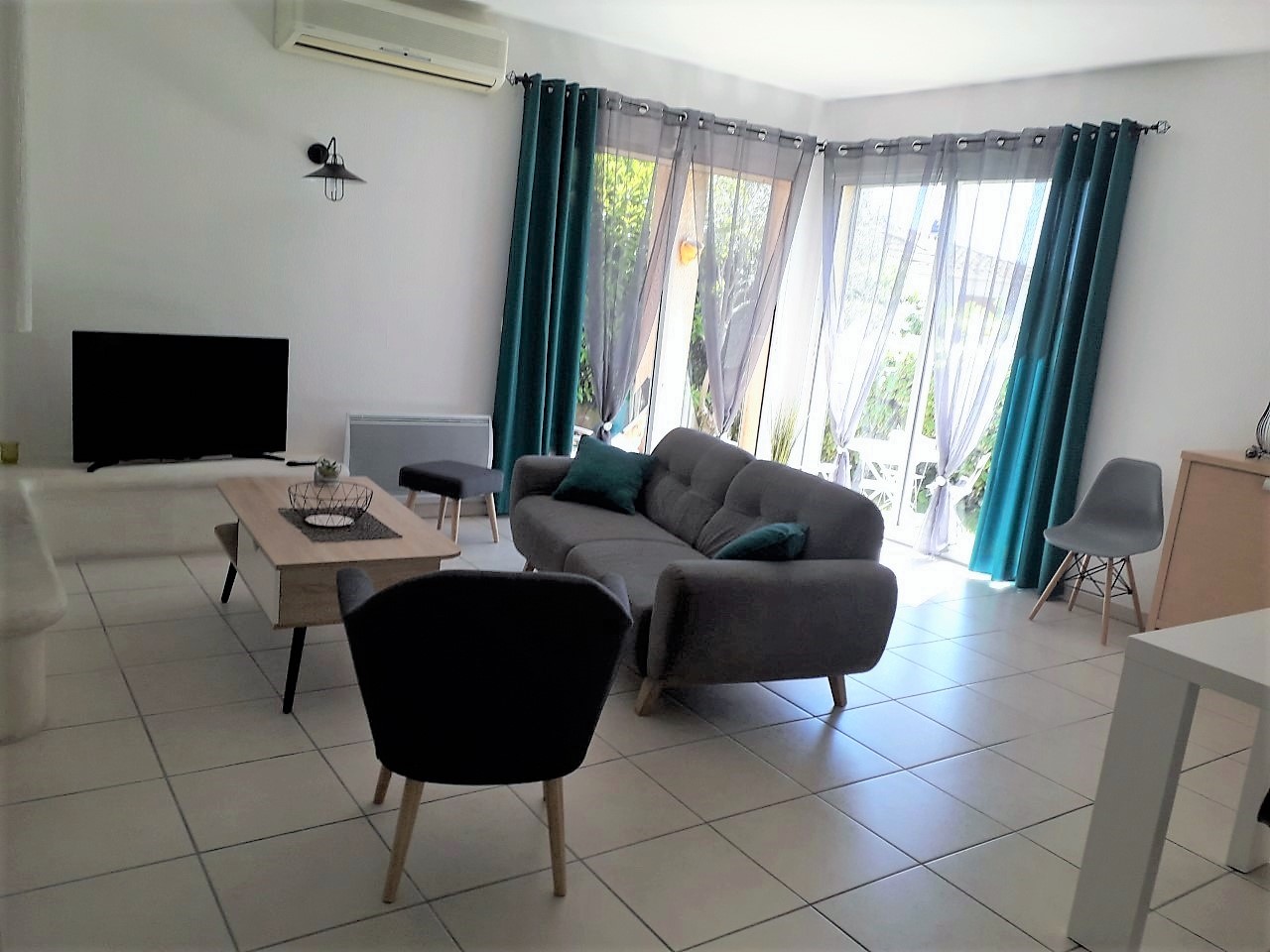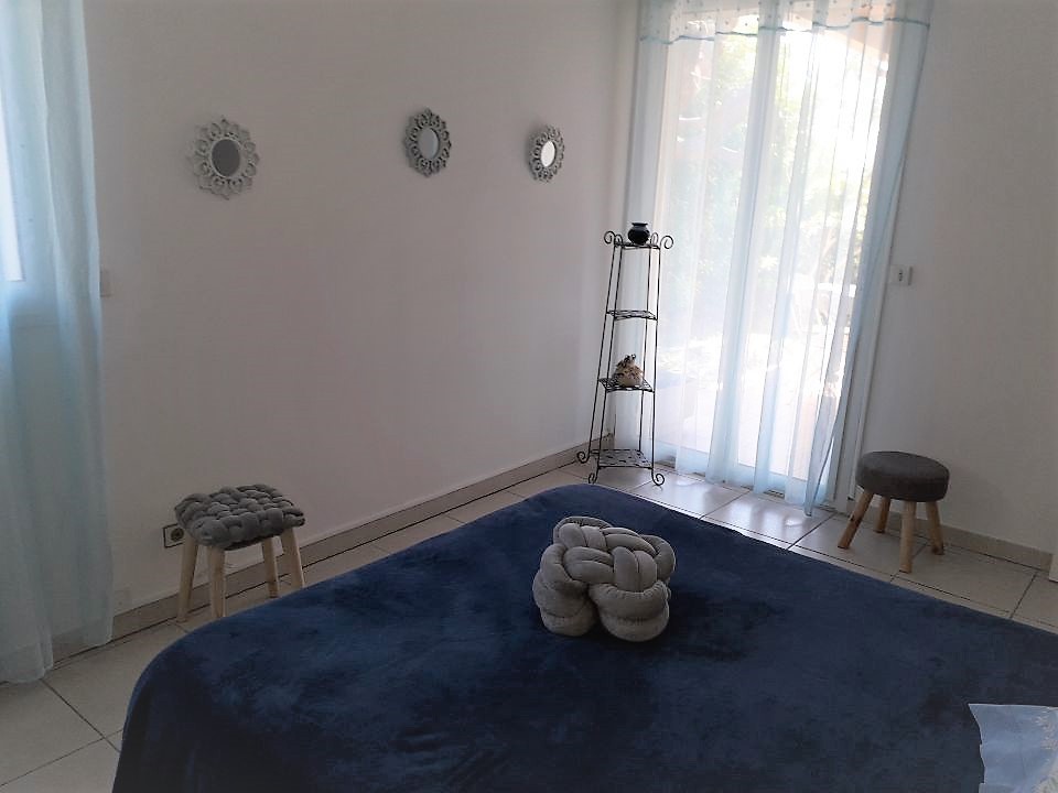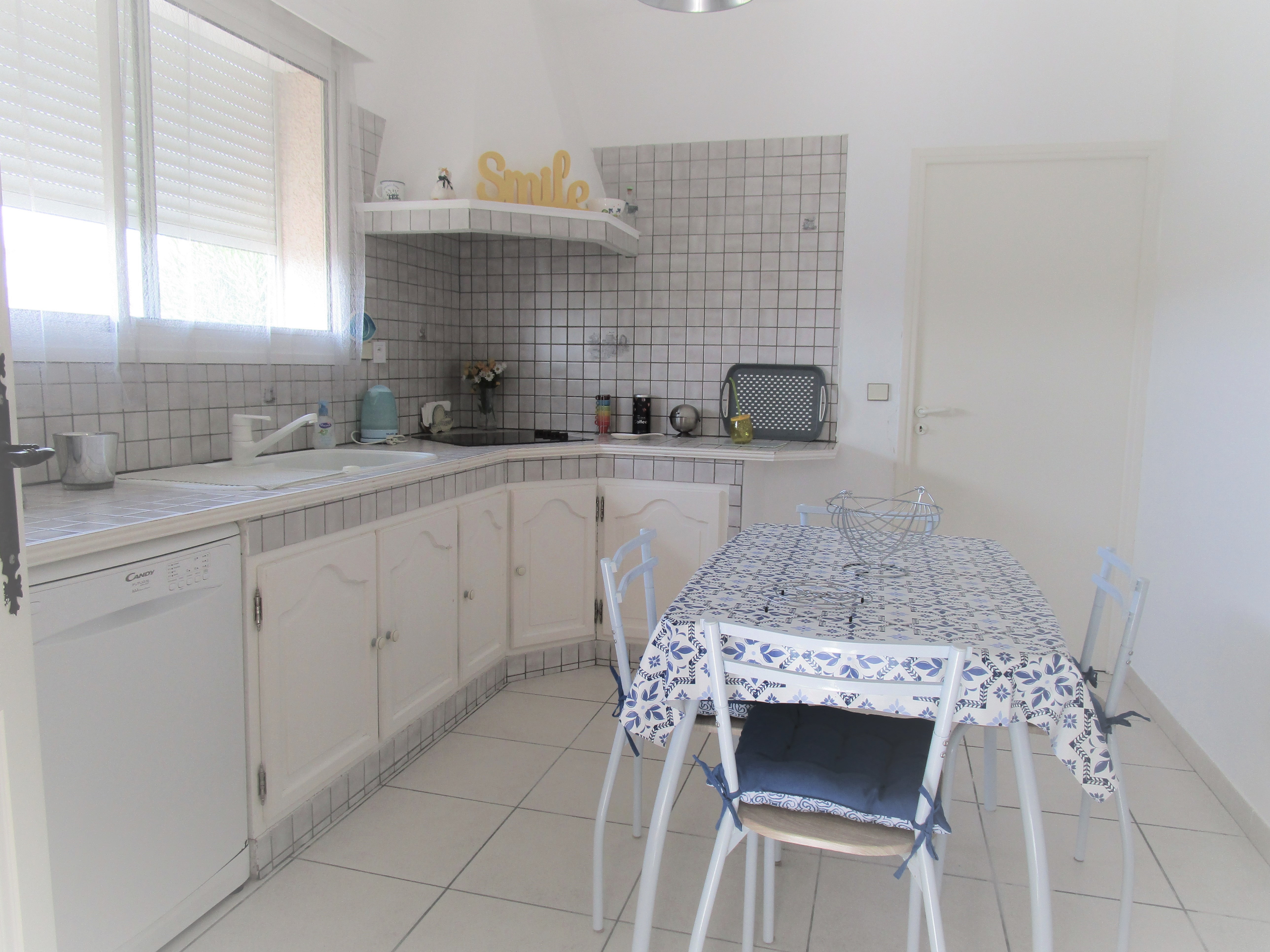 Agréable Villa Plain-Pied de 106 m2 sur un terrain de 600 m2. Entrée, cuisine semi-équipée avec arrière cuisine, spacieux séjour-salon de 41 m2, coin nuit desservant 2 gdes chambres dont 1 avec salle d’eau privative, s de bains, toilettes. Capacité 6 couchages (2 gds lits de 140 x 190 + 1 lit superposé de 2 couchages 90×190) . Parking privatif possibilité de garer 2 véhicules à l’intérieur du jardin + 1 place extérieure devant la villa. Beau jardin avec pelouse et arrosage automatique. 2 belles terrasses. Belle vue dégagée. Climatisation réversible. Internet gratuit.