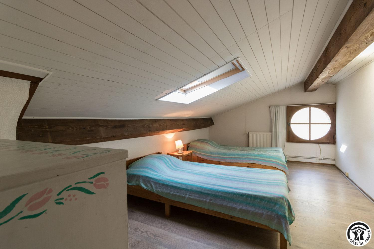 – attic floor: 4 single beds (90cm), 2 of which are in a closed bedroom, toilet, separate WC.