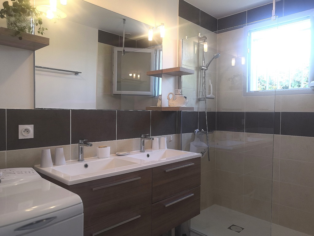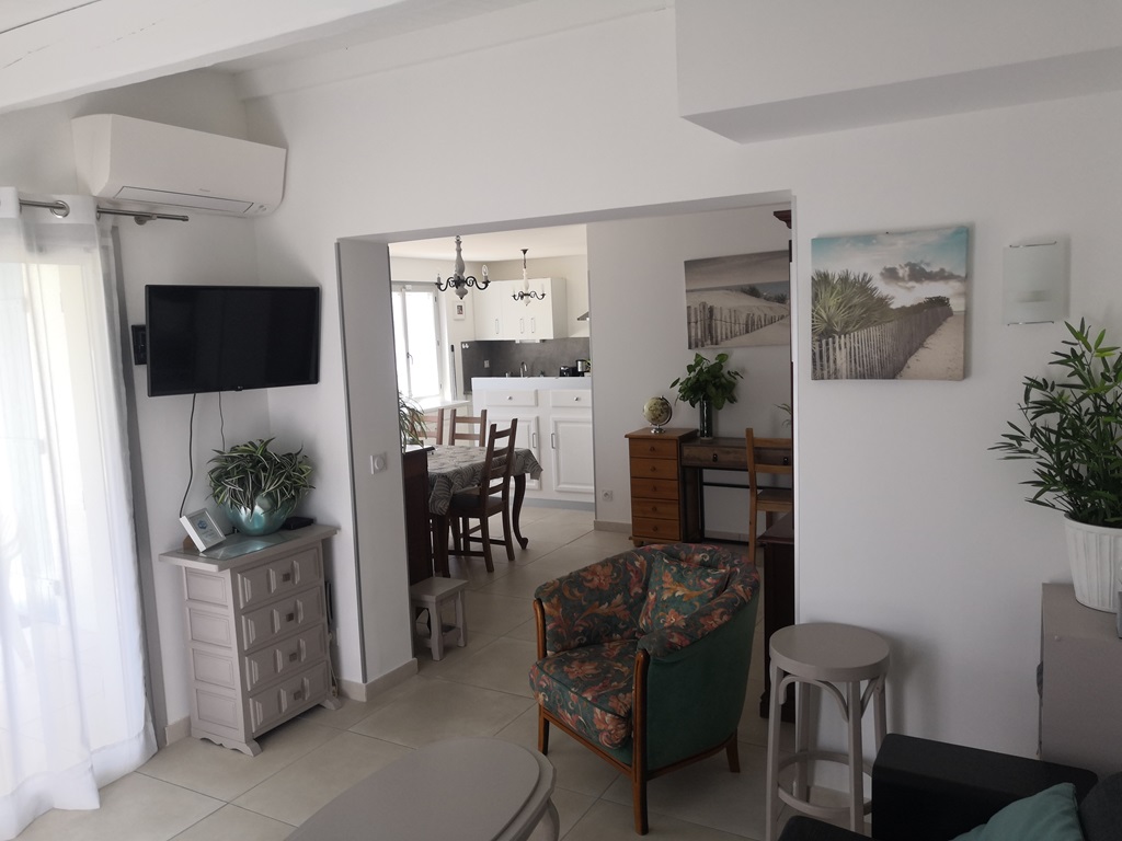 Rare in Grau d’Agde. Classified 4****. 100m from the beach. Ideal for doing everything on foot. Charming single-storey family home of 95m². Not overlooked. Fully renovated and air-conditioned. Enclosed grounds of 400m² with trees and shrubs. Parking for 2 cars and automatic gate. Close to shops, restaurants, markets and the banks of the Hérault. 1st sheltered terrace with table and chairs for outdoor meals. 2nd terrace with cooking area, barbecue, plancha and large Italian-style garden shower. 1 pergola housing 1 set of garden furniture. 1 green space with deckchairs and parasol for sunbathing or relaxing. All of which provides plenty of space for fun with the kids.