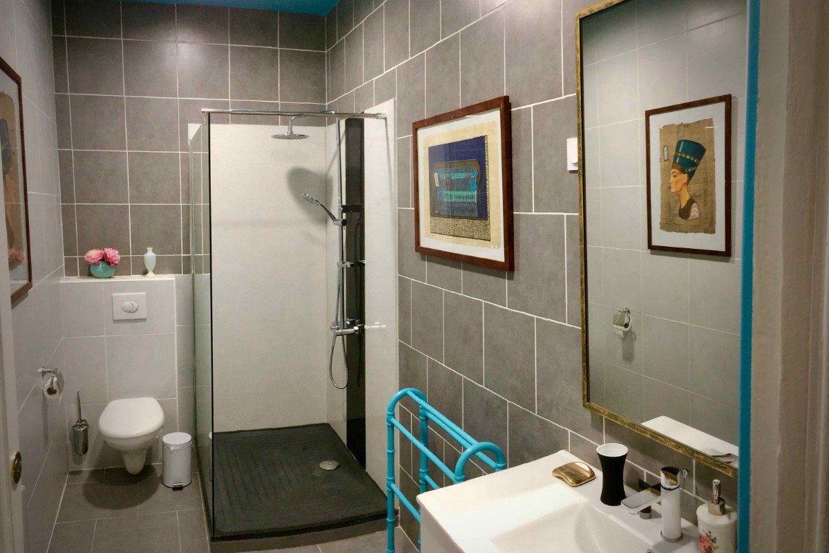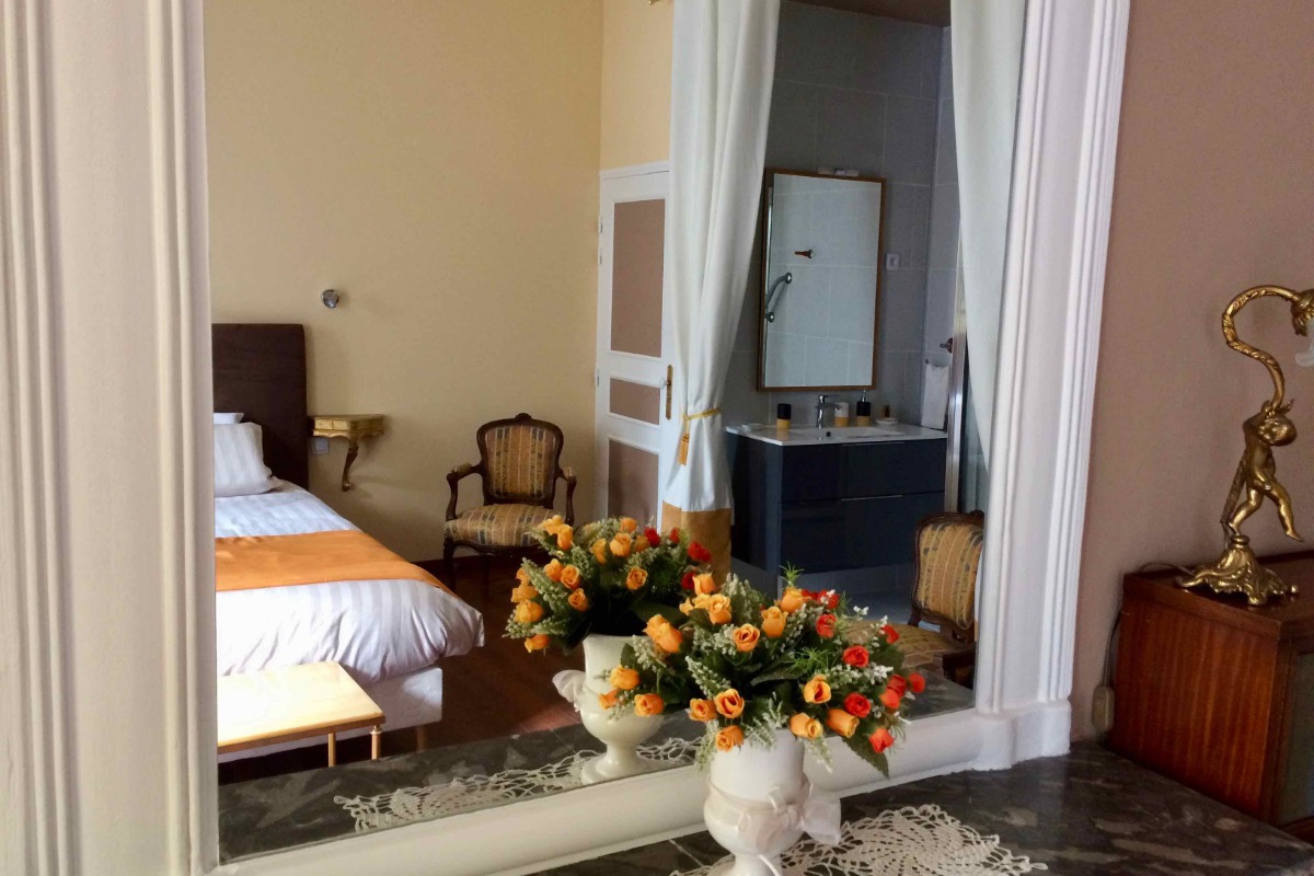 Située dans le centre historique de Béziers, la Villa Rosa a été construite durant la deuxième moitié du 18 siècle et offre tout le confort du 21. Située à deux pas de la Cathédrale St Nazaire, vous séjournerez dans notre luxueuse chambre d’hôtes bleue de 14 m² située au deuxième étage. Elle est aménagée d’un lit en 160 x 200 cm, d’une connexion Internet gratuit sur demande. Lit bébé également disponible sur demande. Salle de bain et toilettes indépendantes. Le petit déjeuner continental ou américain (supplément de 5€ par personne par jour) peut être pris dans la pièce de vie ou sur la terrasse du premier étage.