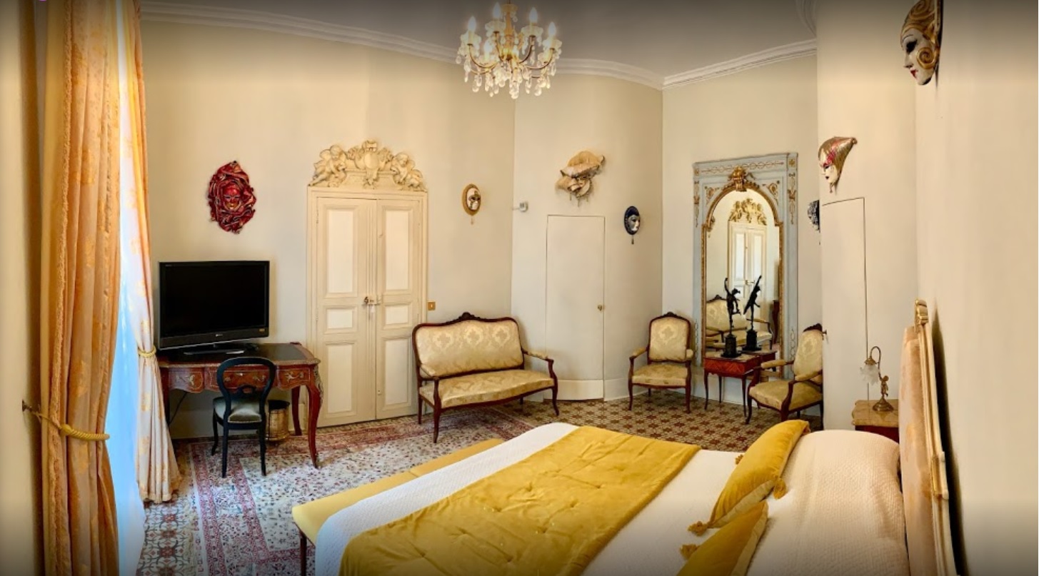 Située au premier étage de la Villa Rosa, la chambre vénitienne d’une surface de 26 m2 est équipée d’un lit 160×200 et peut être transformée en chambre à occupation triple en ajoutant sur demande un lit de 90×200 dans la même pièce. Pour ce dernier, il faut compter un supplément de 30€ par nuit. Ce supplément s’applique de la même façon si vous choisissez de dormir dans deux lits séparés. Un lit bébé peut également être ajouté sur demande à titre gracieux. La salle de bain, d’une surface de 17m2 possède tout le confort d’une salle de bain moderne. Cette chambre possède également une terrasse privée avec vue sur le patio et, est très calme.