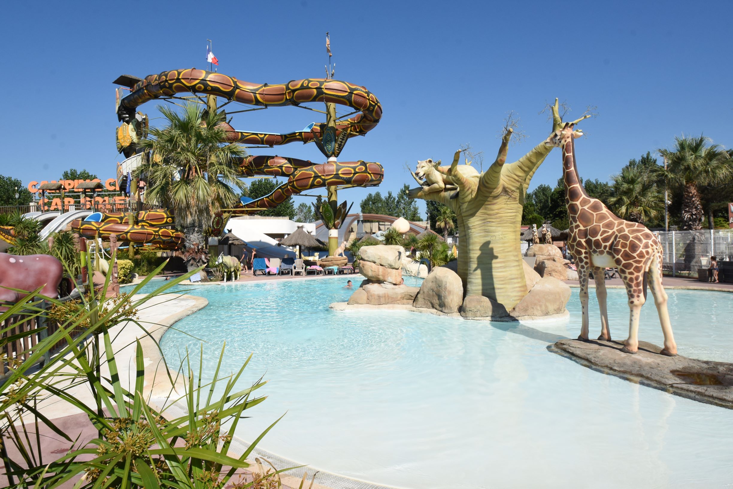 The campsite features a superb savannah-themed aqualudic area (5 slides, lagoon pools, integrated jacuzzi, secure paddling pool), a heated spa area unique to Vias (various pools with massaging jets, jacuzzis, sauna, hammam, massage salon…), and a heated indoor pool with paddling pool.