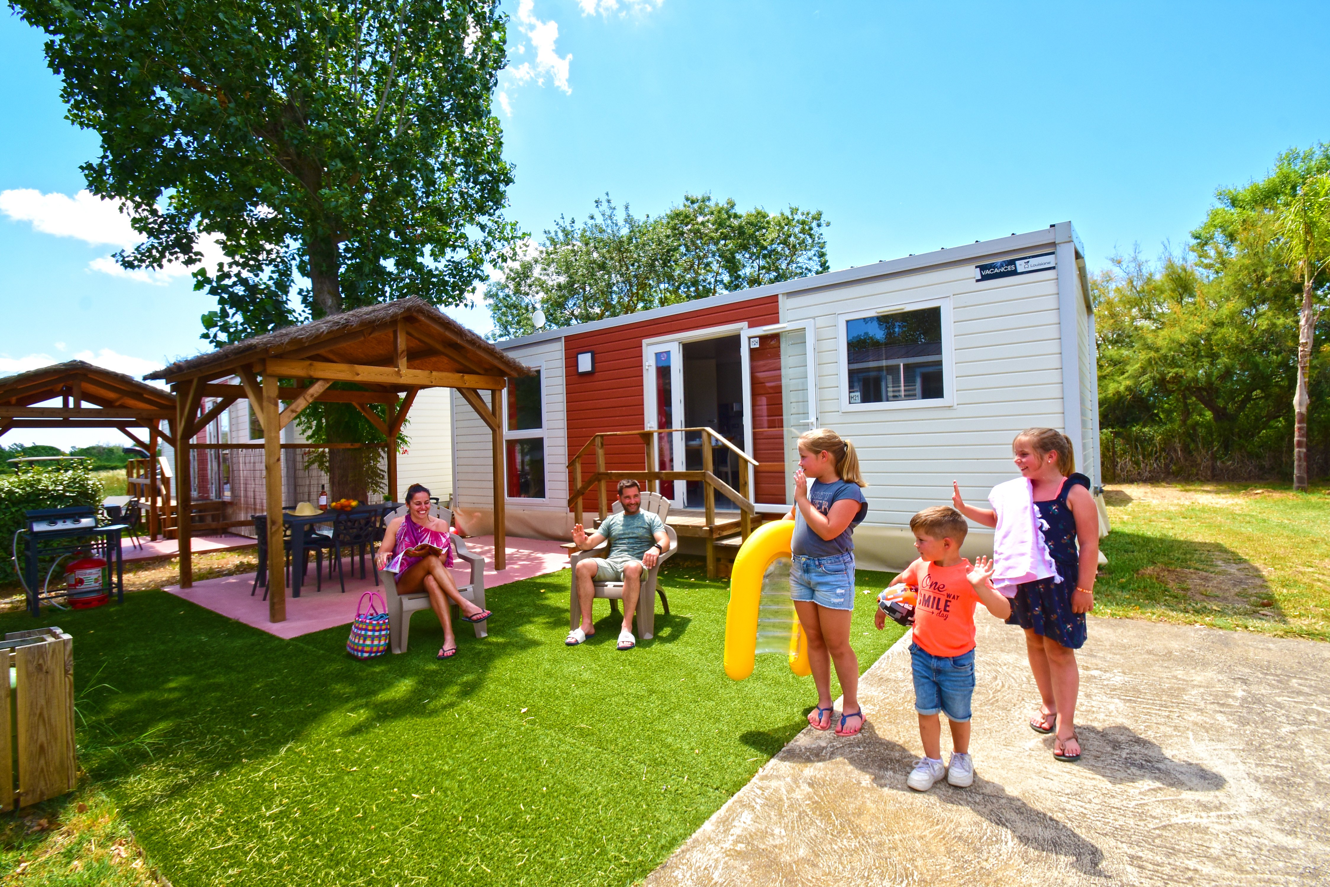 Rental of semi-shaded camping pitches (3 types) and air-conditioned mobile homes for up to 6 people (6 categories – private outdoor space).