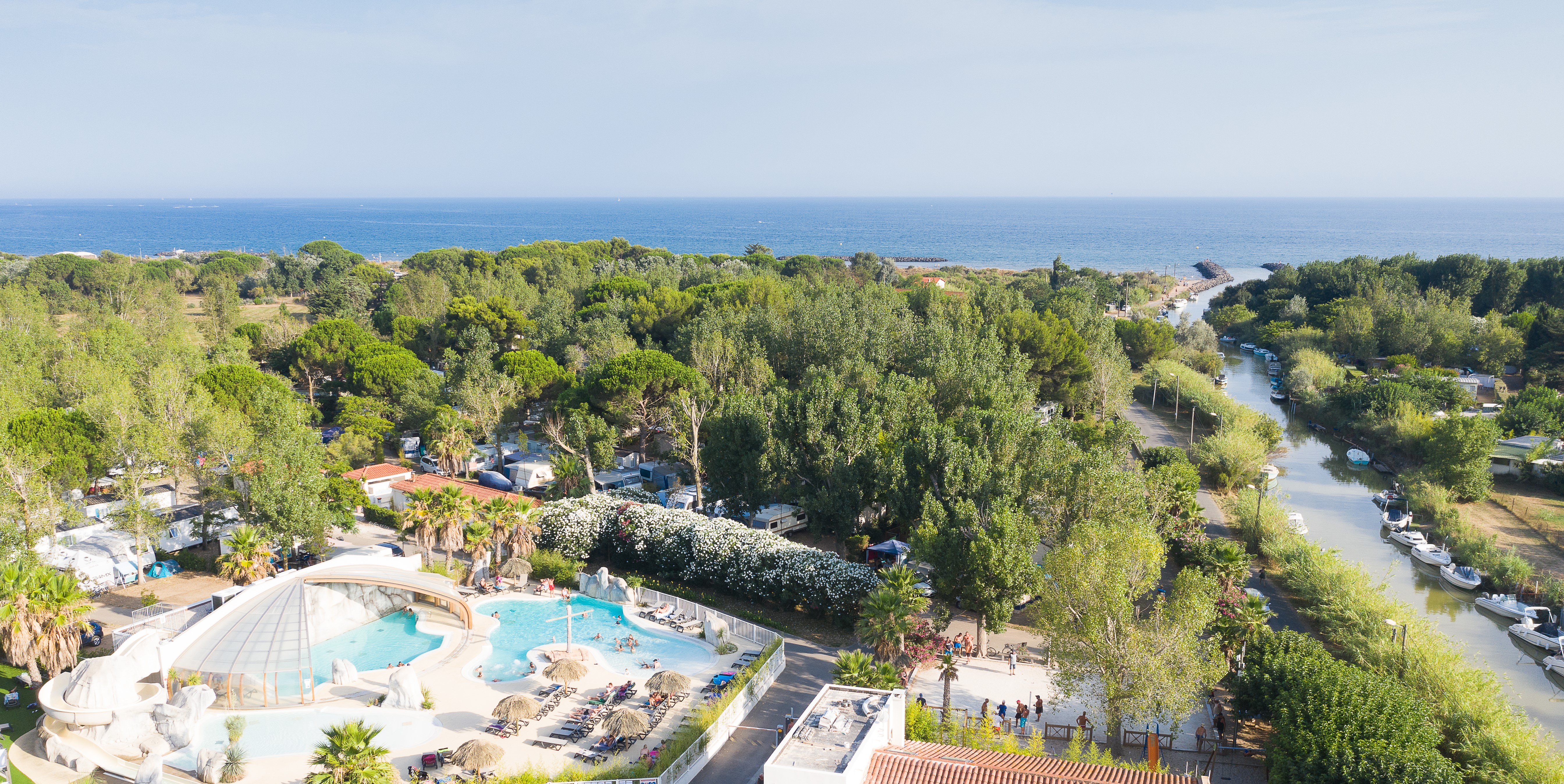 Family campsite in the heart of a green, flower-filled natural setting, just 200 m from the beach and 500 m from the seaside resort of Vias-Plage.