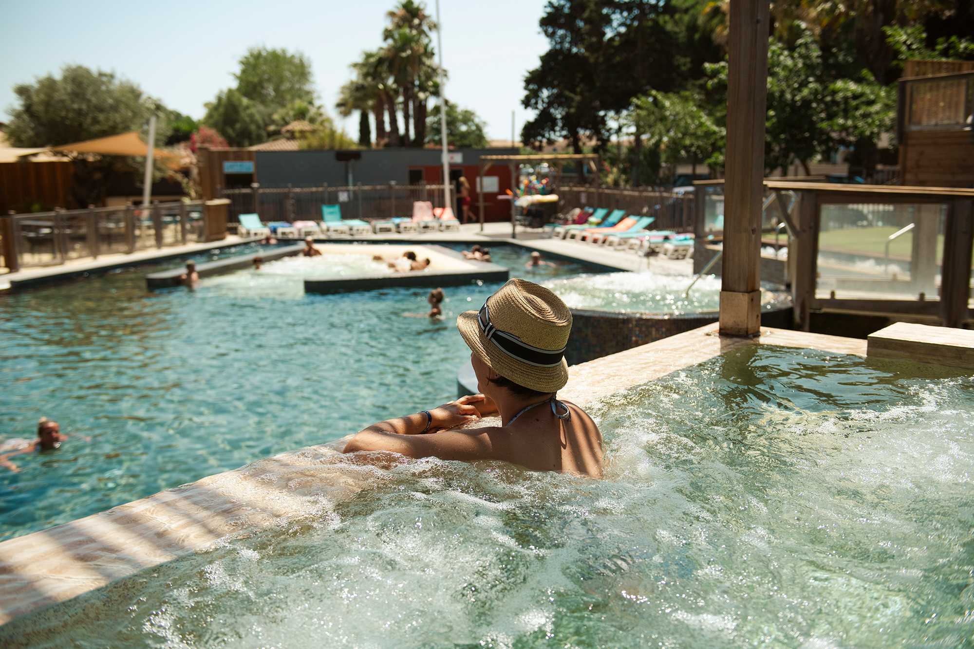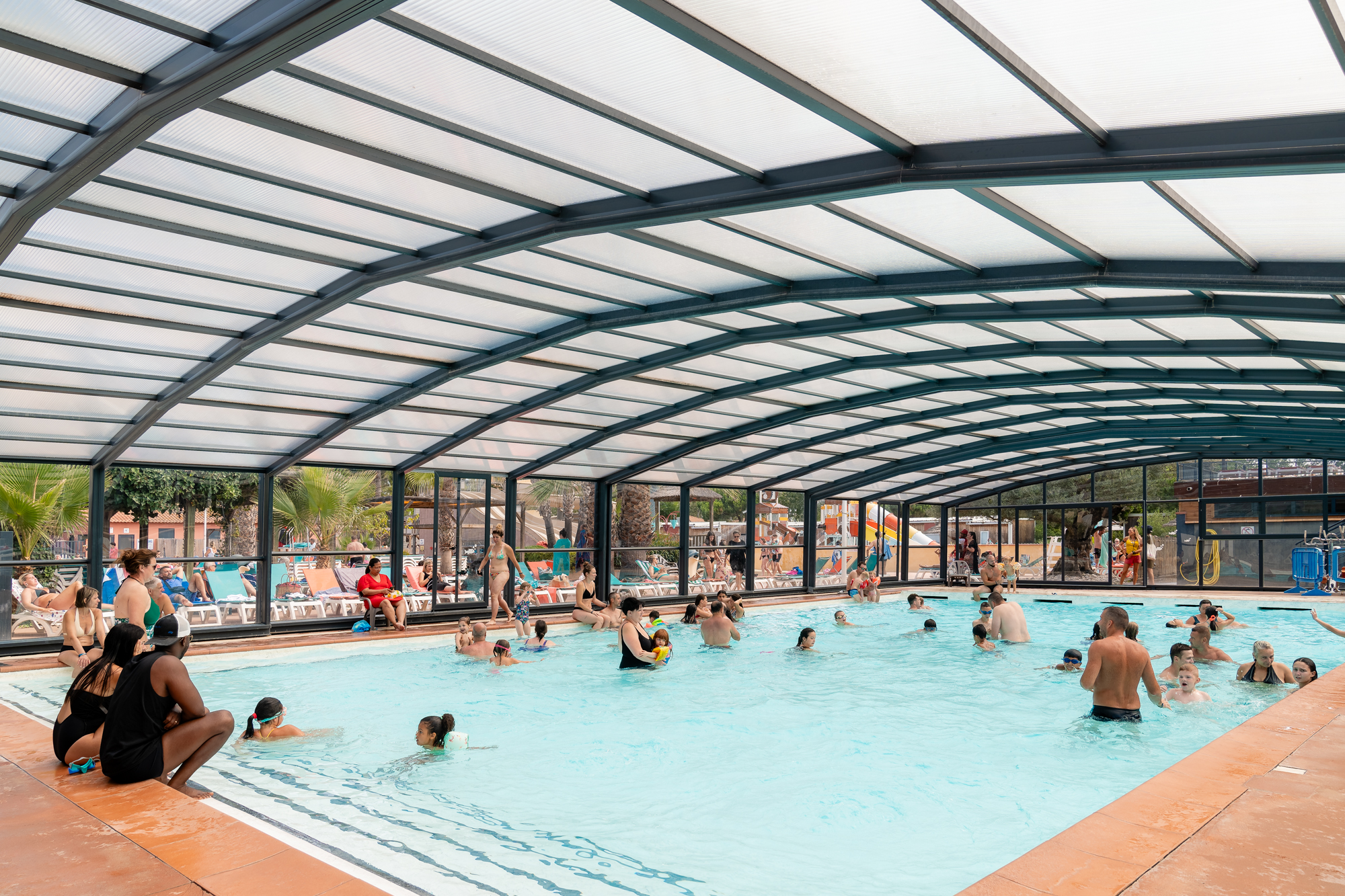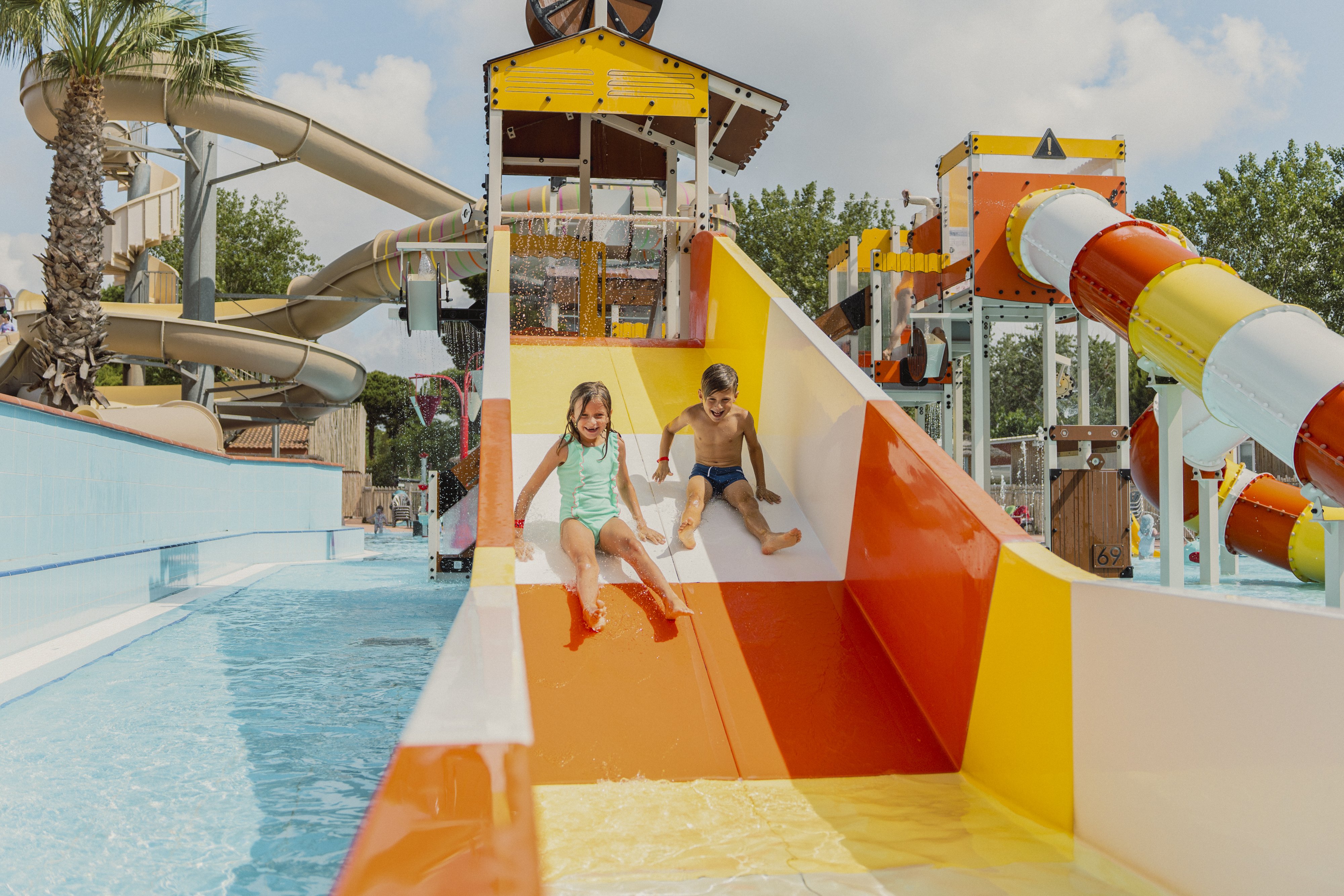 Everything for relaxation: 3 pools heated to 26°, 1 paddling pool, 5 slides, 1 tennis court, 2 padel courts and a 400 m² balneo with 4 jacuzzis, anatomical bench, geyser, swan neck, river, etc.