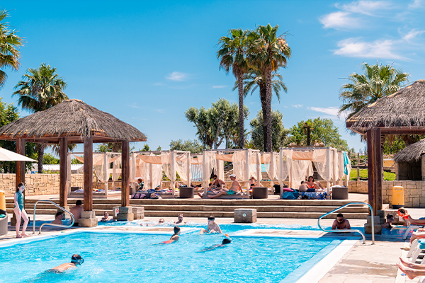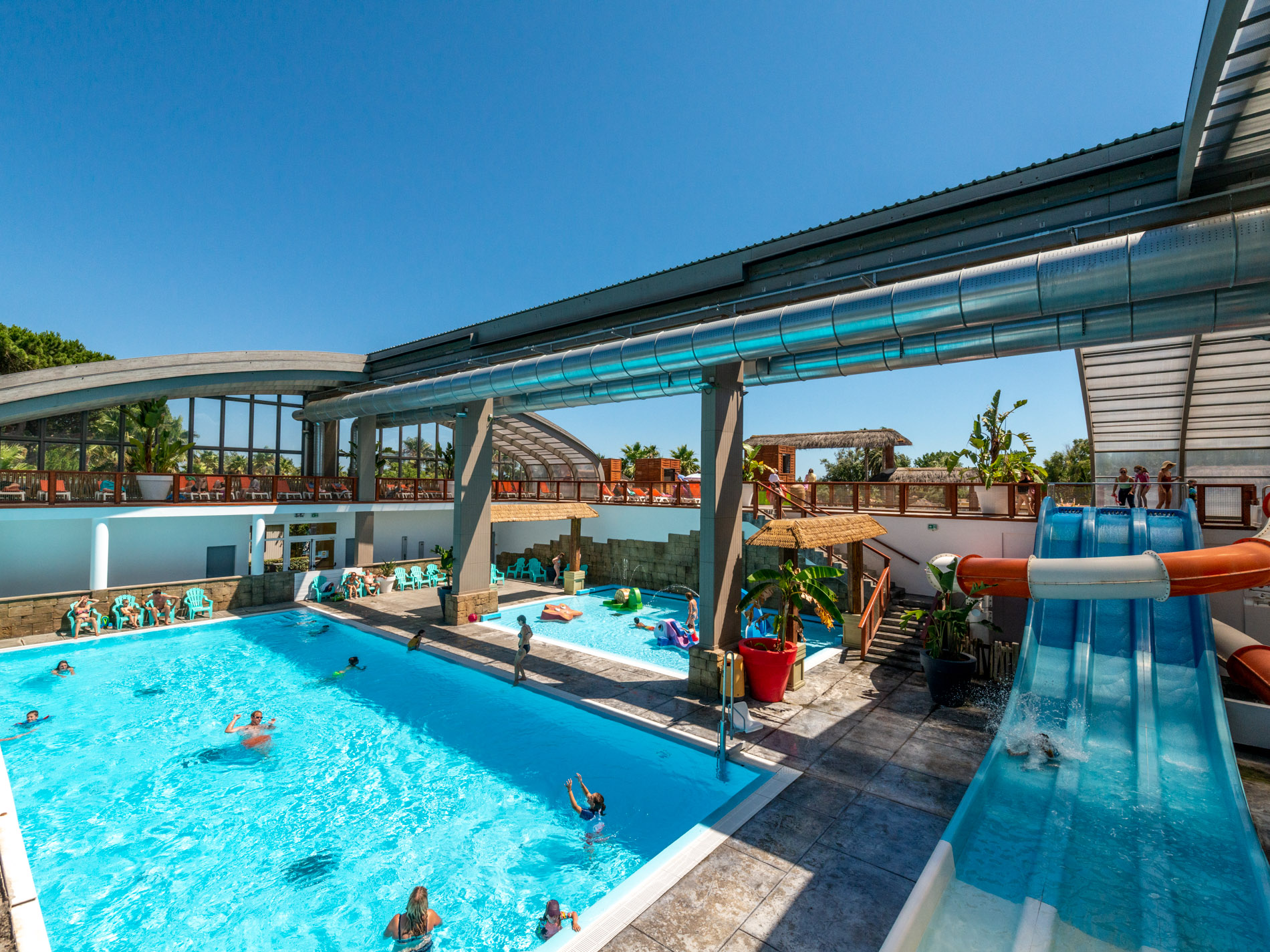 From the moment you open: 3 aquatic areas including 1 indoor pool with slides, heated paddling pools, bar, restaurant, mini-market, bakery, wellness center with sauna, hammam, jacuzzi, treatments… …