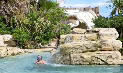 Dans ce camping situé en bord de plage, vous séjournerez en mobil-home et profiterez aussi d’un bel espace piscine avec toboggan aquatique.