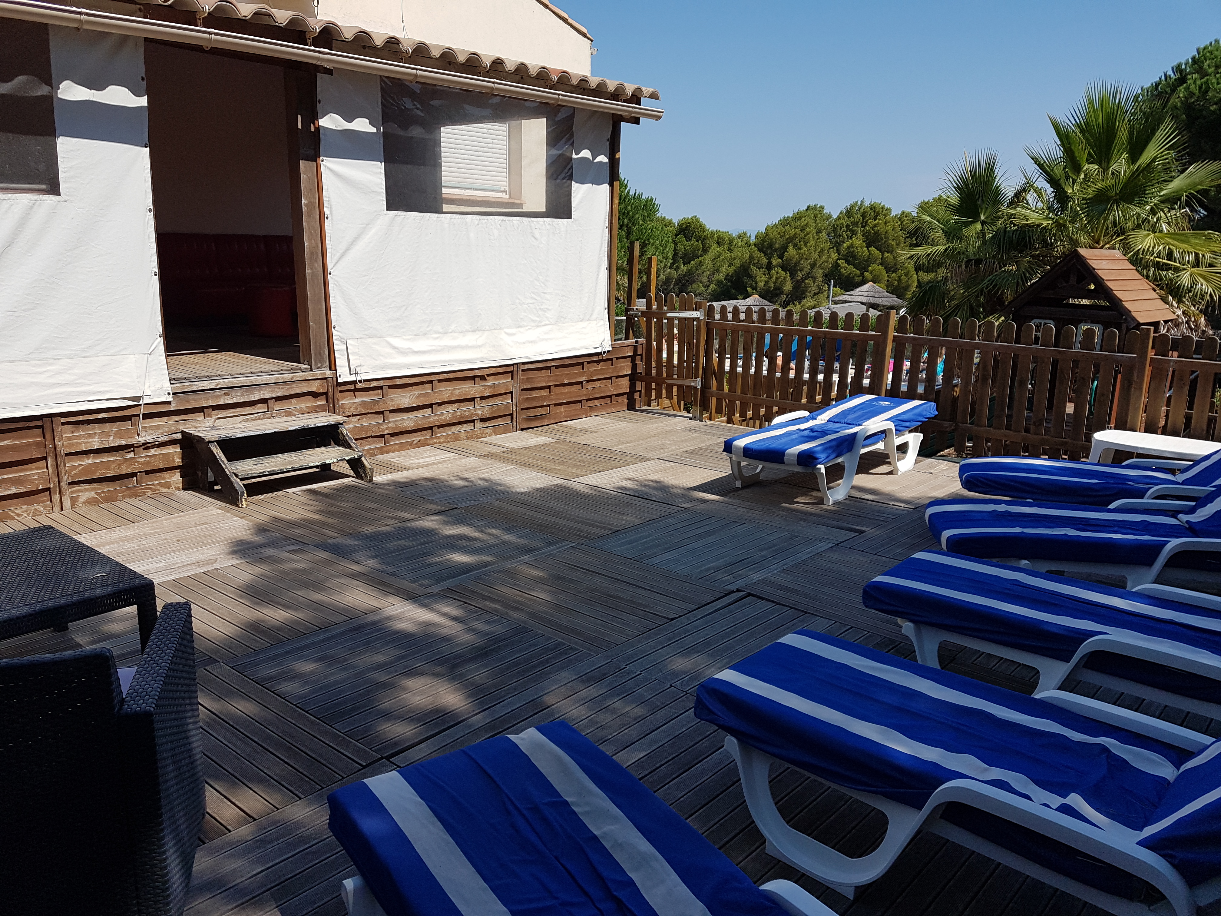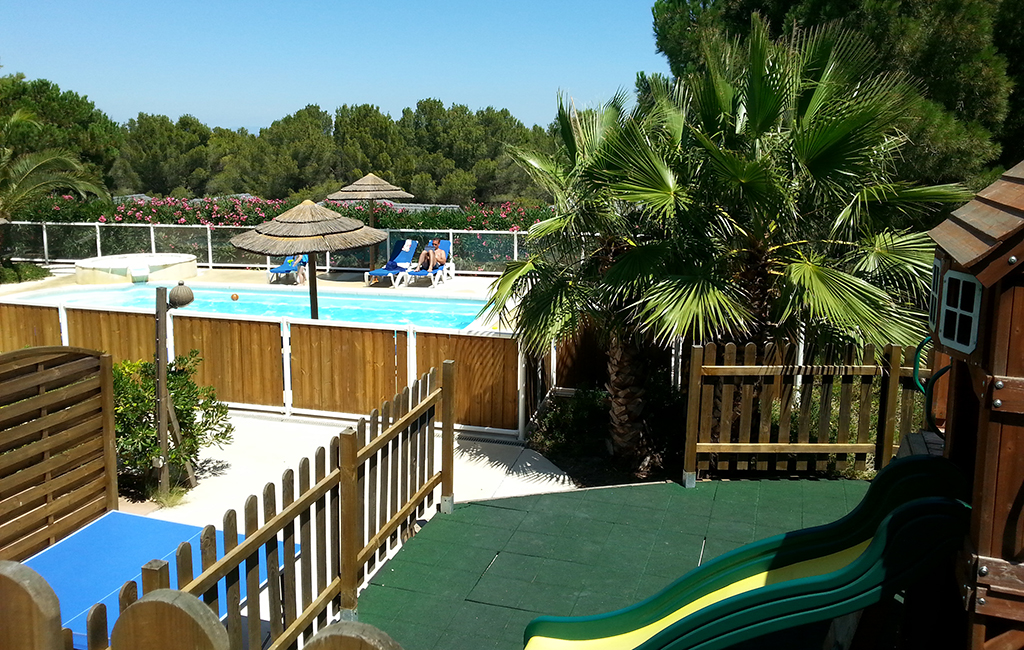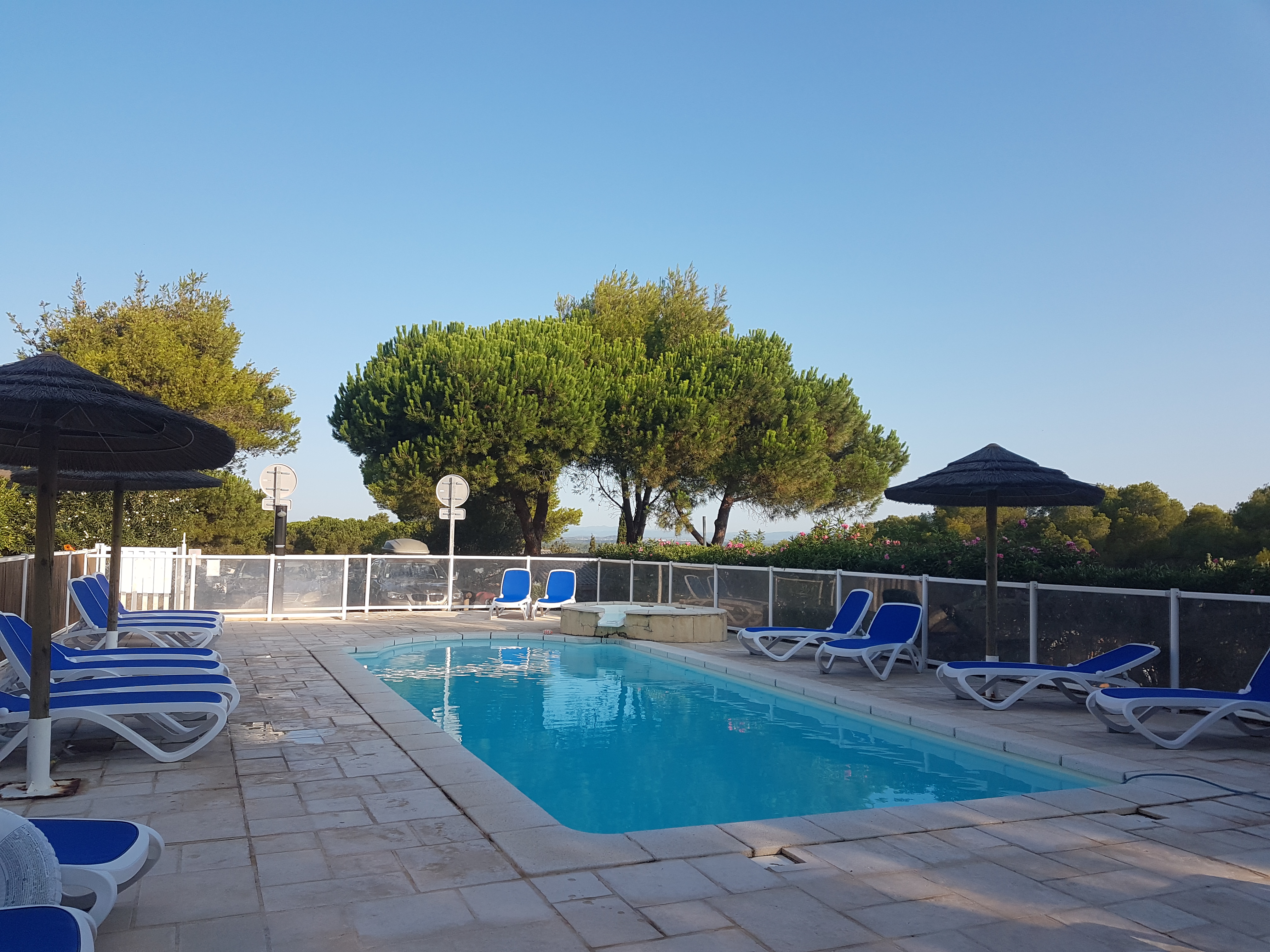 Parc Résidentiel de Loisirs located on Mont Saint-Loup, in the pine forest, in a peaceful setting overlooking Etang de Thau and Sète in the distance. Heated outdoor pool. Beach 2km away (5 min by car). Shops 800 m away.