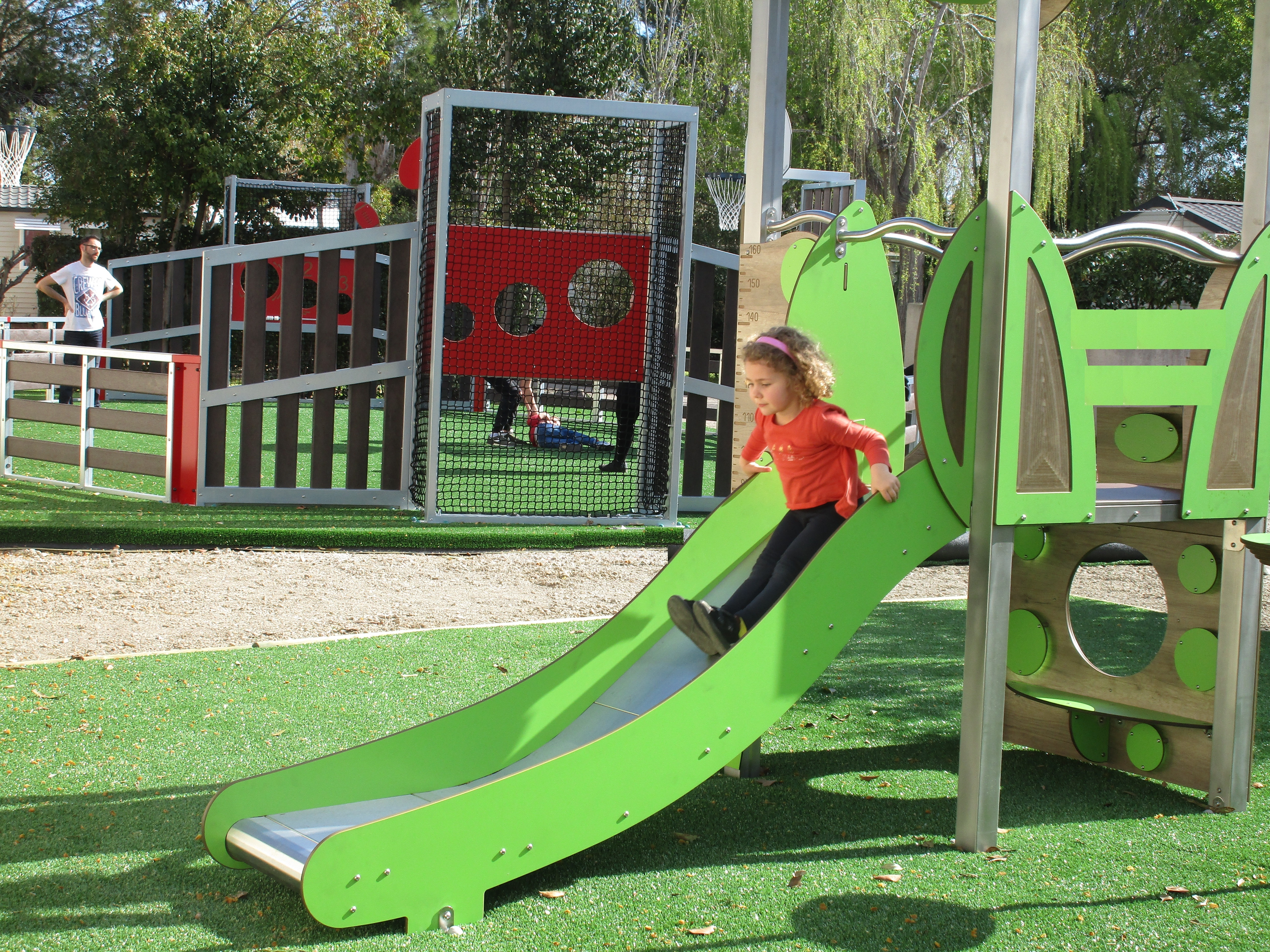 Multi-game pitch, 2 play areas, laundry, fitness area.