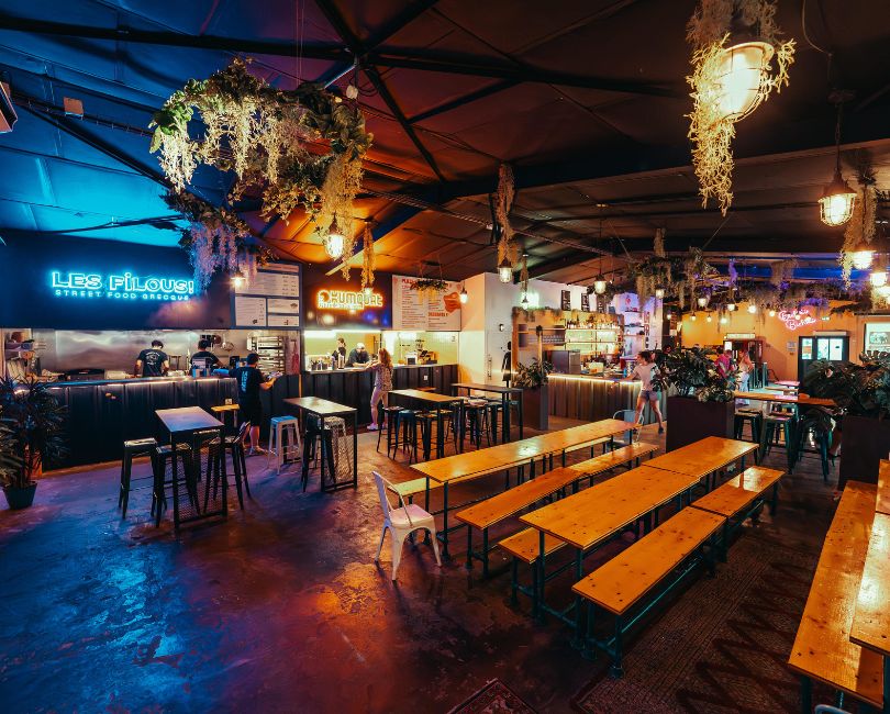 La Friche Gramont est un food court de 2 bars et de 4 restaurants (pizza, burger, vietnamien, tapas).