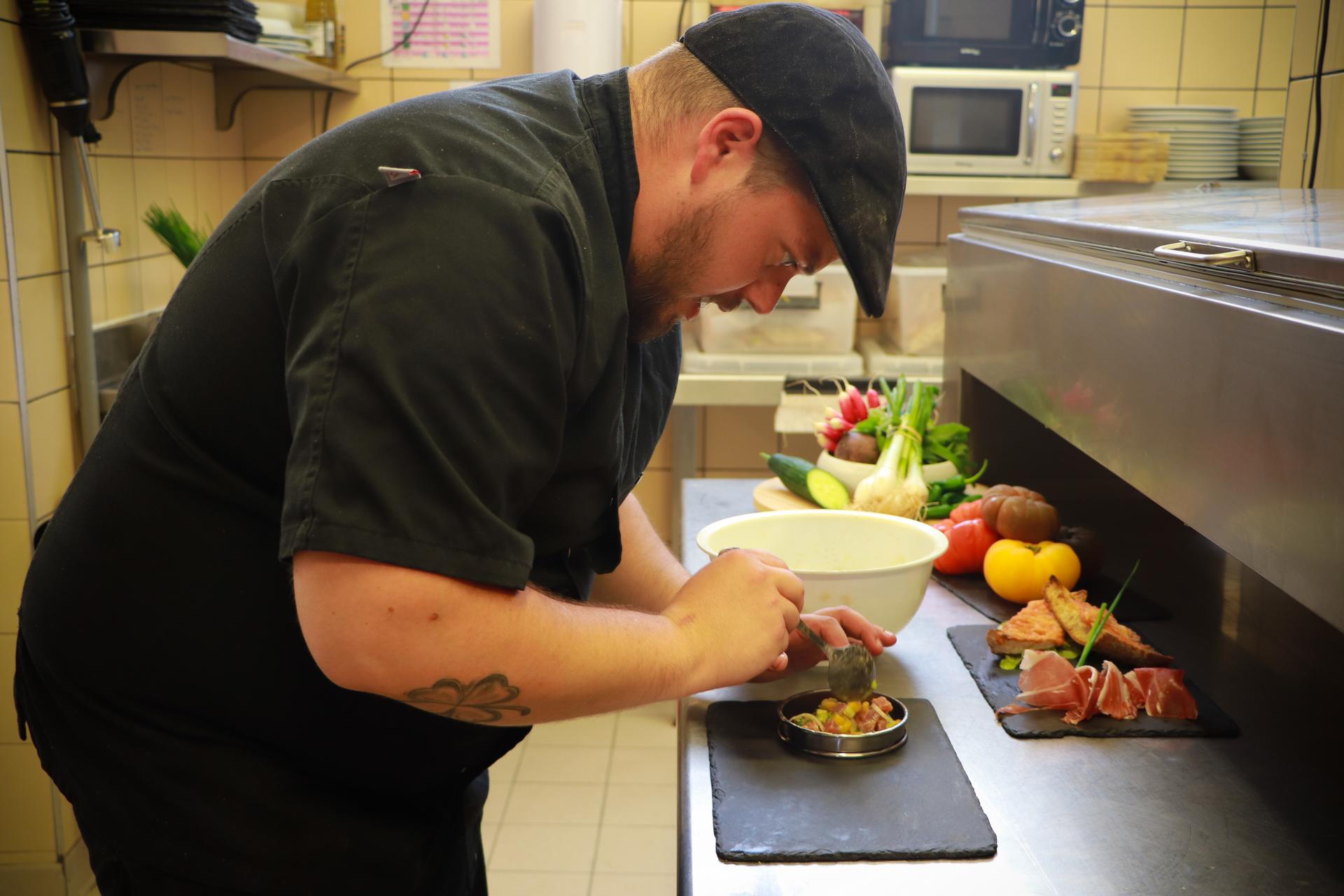 Le soir venu l’établissement se transforme en véritable bar à vin. A la carte il vous sera proposé des tapas mais également des plats : magret de Canard, grillade de boeuf, burgers maisons, salades repas et pour les gourmands des pâtisseries confectionnées par nos soins. Chef QUELQUEJEU Jean Daniel