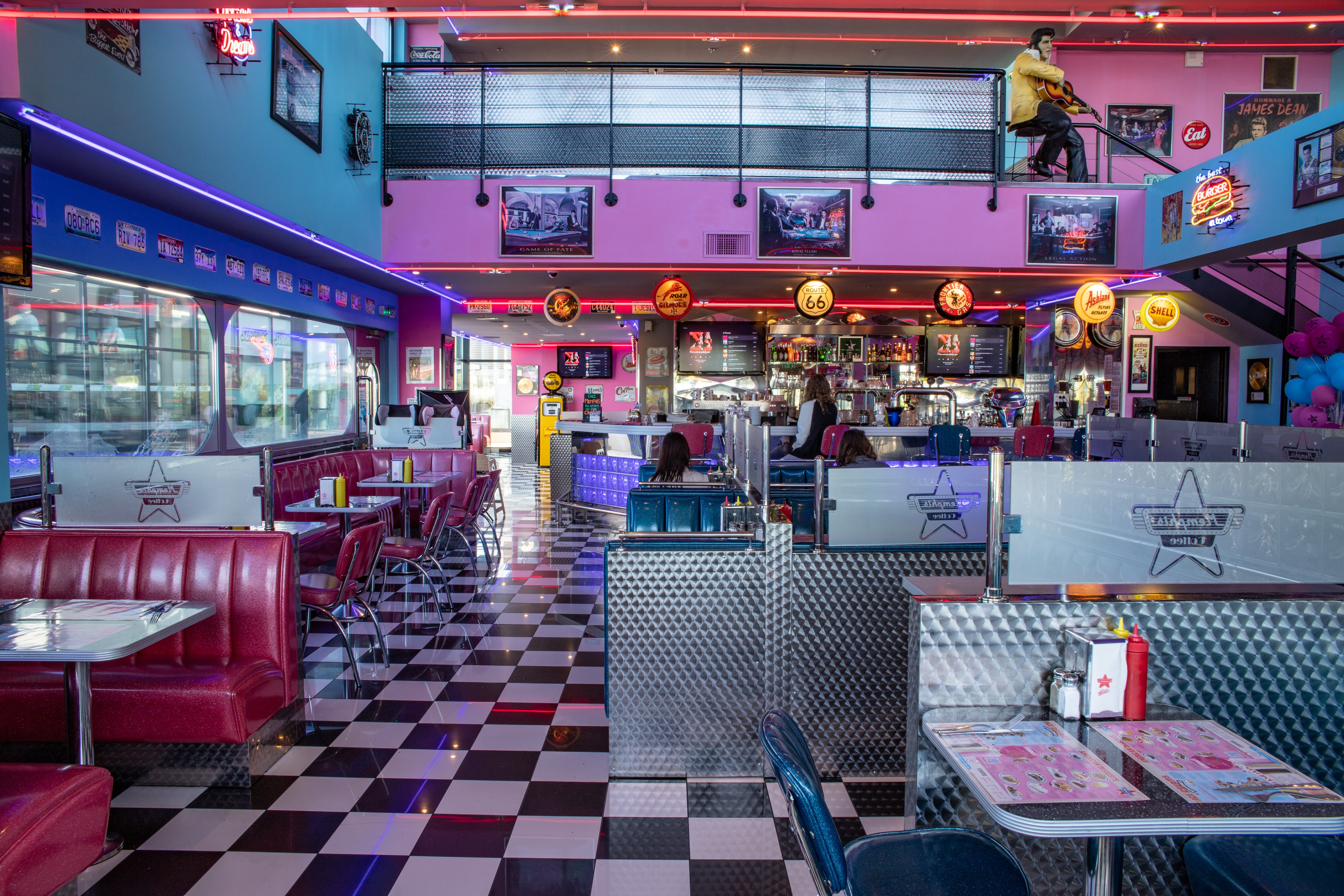 Le concept de restauration rapide est présent mais ici vous êtes dans un vrai restaurant, les plats sont servis à table par une serveuse en tenue américaine des années 1950. Le service s’effectue 7 jours sur 7 en continu de midi à 23h.