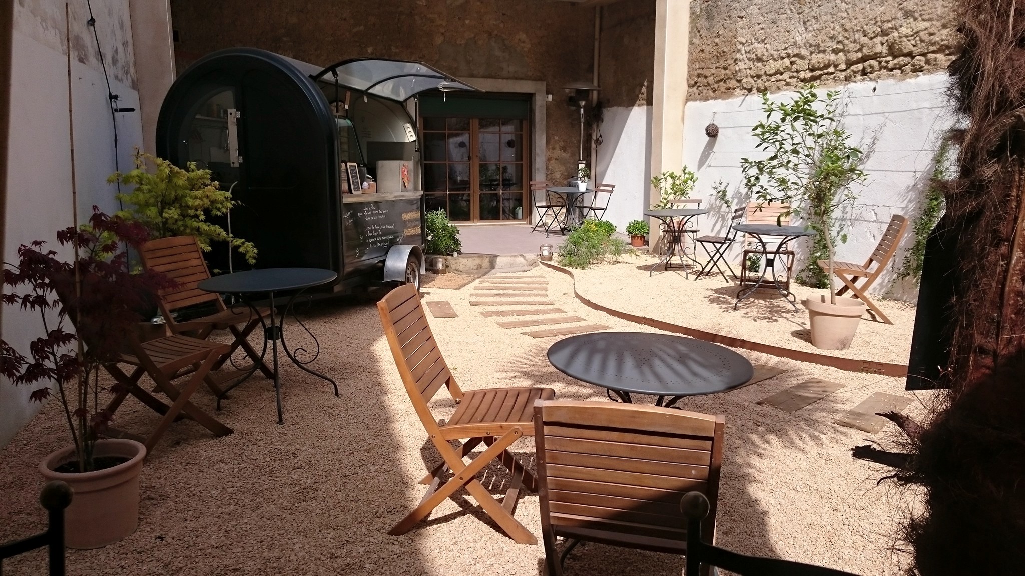 Durant les beaux jours, il se pose dans la cour d’un hôtel particulier du centre du village, à déguster sur place ou à emporter !