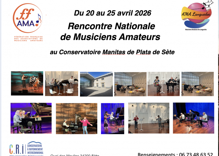 Vous êtes instrumentiste ou chanteur ? Venez participer à la 3ème Rencontre nationale des musiciens amateurs de la FFAMA !Les Rencontres Musicales sont des rencontres de musique de chambre.Elles s’adressent à tout instrumentiste ou chanteur, quel que soit son niveau et l’instrument pratiqué (piano, cordes, vents, voix…), qui veut jouer / travailler pendant toute la semaine un répertoire qu’il aura choisi avec d’autres musiciens. Une audition de fin de stage se tiendra le 25 avril dans l’auditorium Maurice Ravel.