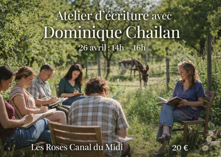 La granja Les Roses Canal du Midi le invita a un momento de escritura y autodescubrimiento con la autora Dominique Chailan, para un taller de escritura sensible inspirado en la naturaleza.
