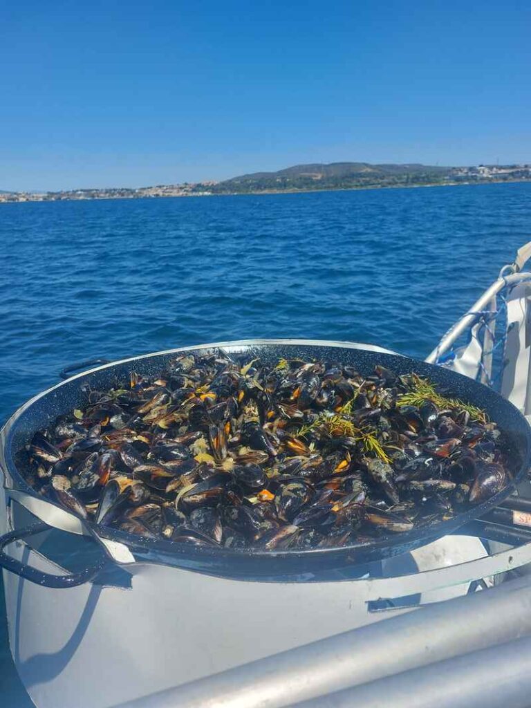 Suba a bordo del Ecothau para vivir una experiencia gastronómica única! Disfrute de la refinada cocina local (la famosa Brasucade) mientras contempla las impresionantes vistas de Sète, Balaruc, Mèze y los viveros o canales de Bouzigues desde nuestro barco.Disfrute de esta sabrosa especialidad, preparada ante sus propios ojos, mientras navega en un ambiente amistoso y festivo.El precio de la actividad incluye: (la receta le será revelada por su capitán.)Salida desde el Puerto de Balaruc les Bains (pantalán de la piscina)(*) Días y horarios sujetos a cambios o adiciones en determinados casos (anulaciones, aplazamientos, condiciones meteorológicas, cuota no alcanzada, etc.)Posibilidad de anulación por condiciones meteorológicas desfavorables o cuota no alcanzada. Mínimo 6 personas por salida.Se admiten perros pequeños a bordo, llevados con correa. Mínimo 6 personas y máximo 12