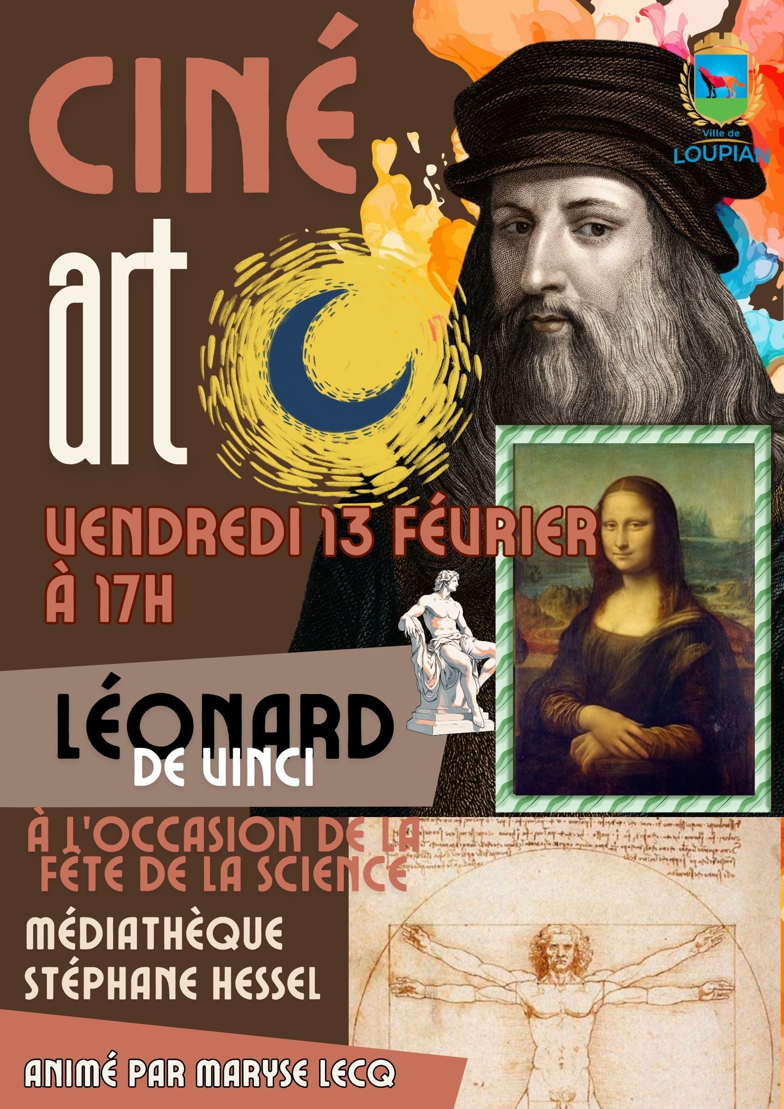 Le Ciné Art est un rendez-vous mensuel où est proposé une petite conférence suivie de la projection d’un film sur la vie d’un artiste.Au programmede ce mois-ci : Léonard DE VINCILéonard de Vinci (1452-1519) est l’un des plus grands peintres de la Renaissance italienne. Né à Vinci, un petit village près de Florence, il s’est illustré dans de nombreux domaines : la peinture, la sculpture, l’architecture, les sciences, l’ingénierie et l’anatomie. Il incarne parfaitement l’idéal de « l’homme universel », capable d’unir l’art et la science.Comme peintre, Léonard de Vinci est surtout connu pour des œuvres majeures telles que La Joconde et La Cène. Ses tableaux se distinguent par un grand réalisme, une maîtrise exceptionnelle de la lumière et de l’ombre, ainsi que par la technique du sfumato, qui adoucit les contours et donne de la profondeur aux visages.Au-delà de l’art, Léonard était un observateur passionné de la nature. Il a rempli des milliers de pages de carnets où il étudiait le corps humain, le vol des oiseaux, le mouvement de l’eau et le fonctionnement des machines. Beaucoup de ses inventions, comme les machines volantes, les ponts ou les engins militaires, étaient très en avance sur leur temps.